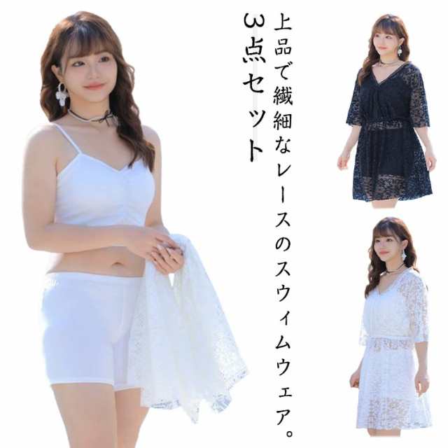 | 上品で繊細なレースのスウィムウェア。3点セット タンキニ、ハーフパンツのセットなので肌の露出が苦手な方でも挑戦しやすいデザインです。 清楚でフェミニンな雰囲気が魅力の総レースのワンピース付き。 気になる二の腕やお尻はしっかりとカバーできる形なので安心! Vネックデザインで首周りはすっきりとして見えます。 水陸両用で使えるので様々なシーンに対応できる ショートパンツはハイウエストタイプ、スタイルアップを期待でき、こなれた雰囲気を醸し出す リゾート、温泉、プール、海、川などのレジャーまで幅広くご使用いただけます。 パット付き. | |