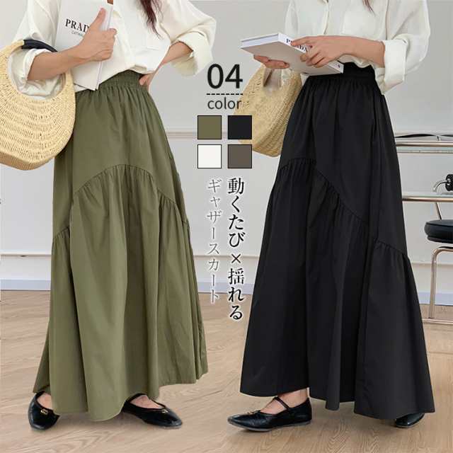 ギャザースカート レディース 夏 ロング ロングスカート マキシ マキシ丈スカート マキシスカート ツイルフレアスカート 無地 ボトムス フレアチノスカート ウエストゴム 大きいサイズ きれいめ ふんわり 高身長 低身長 送料無料 敬老の日 プレゼント