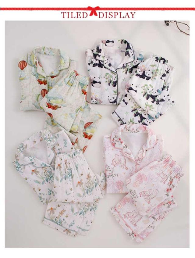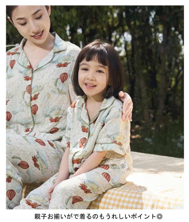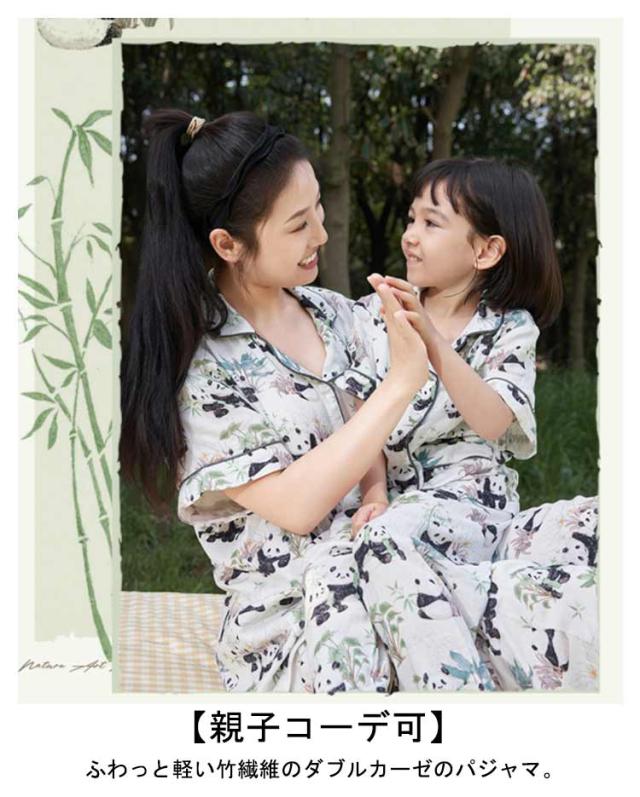 竹繊維 前開き パジャマ かわいい キッズ 親子お揃い 半袖 ペアルック ダブルカーゼ ルームウェア 子供 親子 敏感肌 ペアパジャマ 可愛い カーゼパジャマ 女の子 綿 レデイース 夏 春 部屋着 ハハ 抗菌性 肌に優しい パンダ柄 天然竹素材 花柄 動物 秋