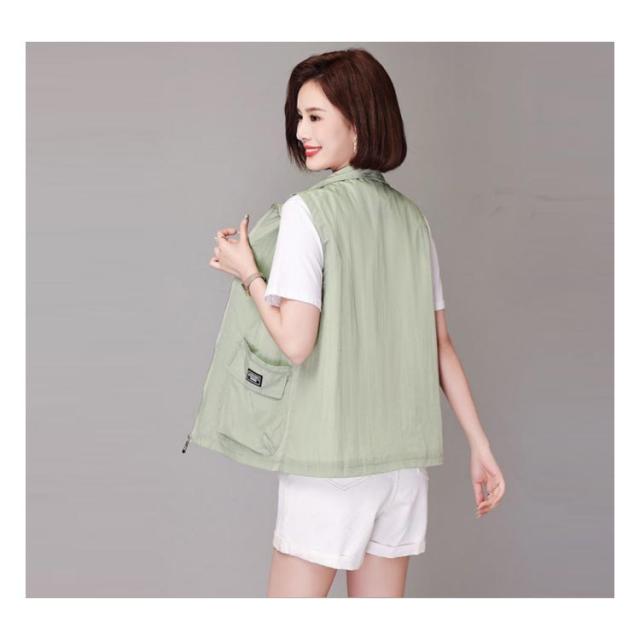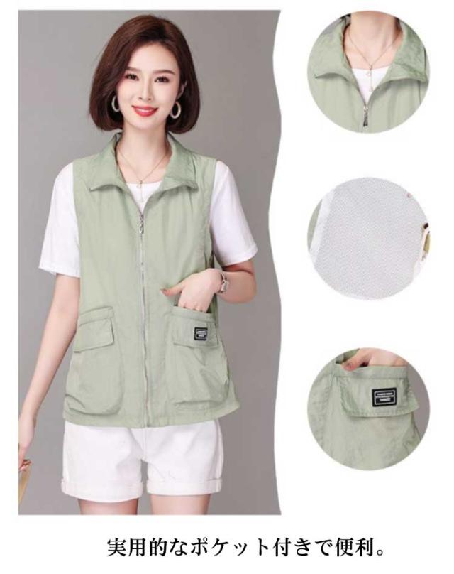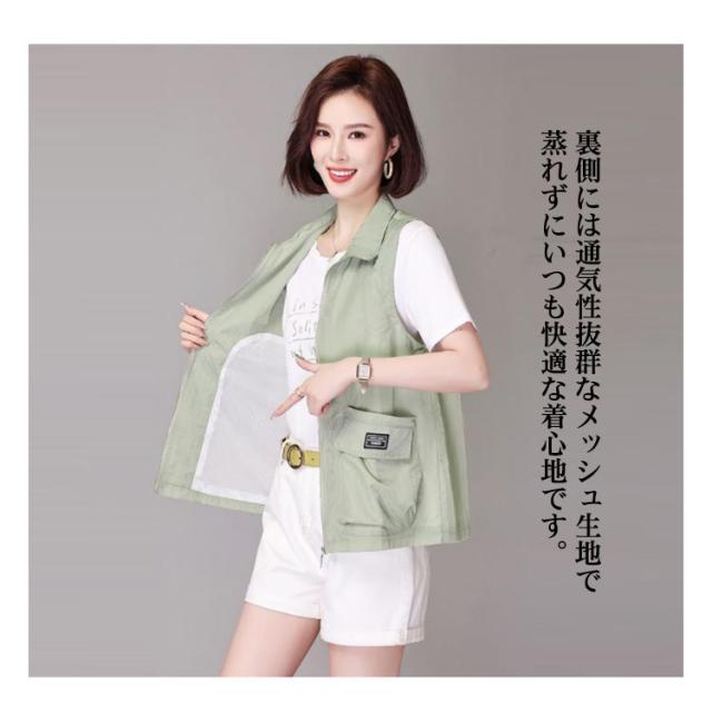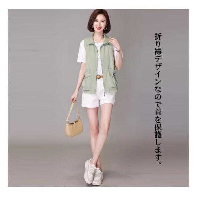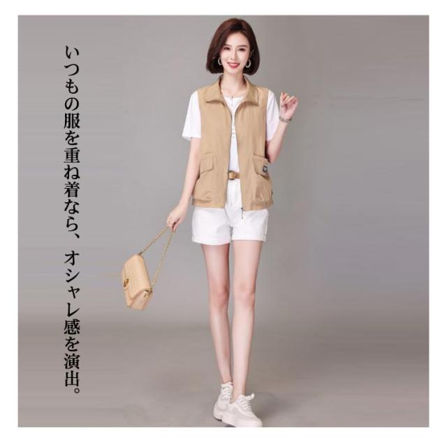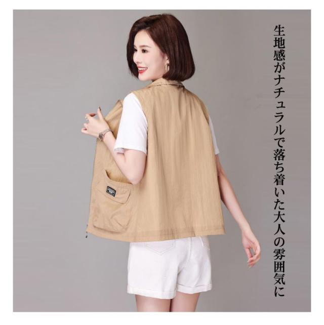 アウター トップス ベスト ノースリーブ ライトアウター レディース トレンチベスト アウター レイヤード 送料無料 無地 羽織り 羽織 前開き ショート丈 折り襟 春 夏 大人
