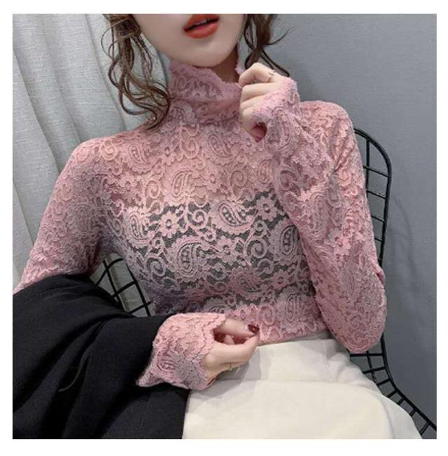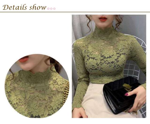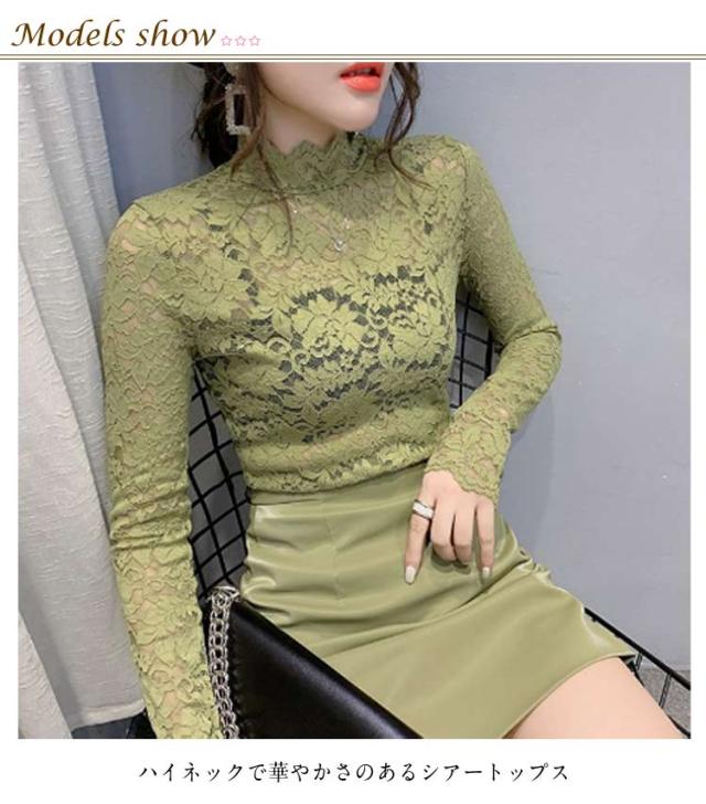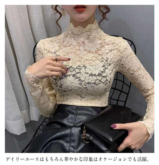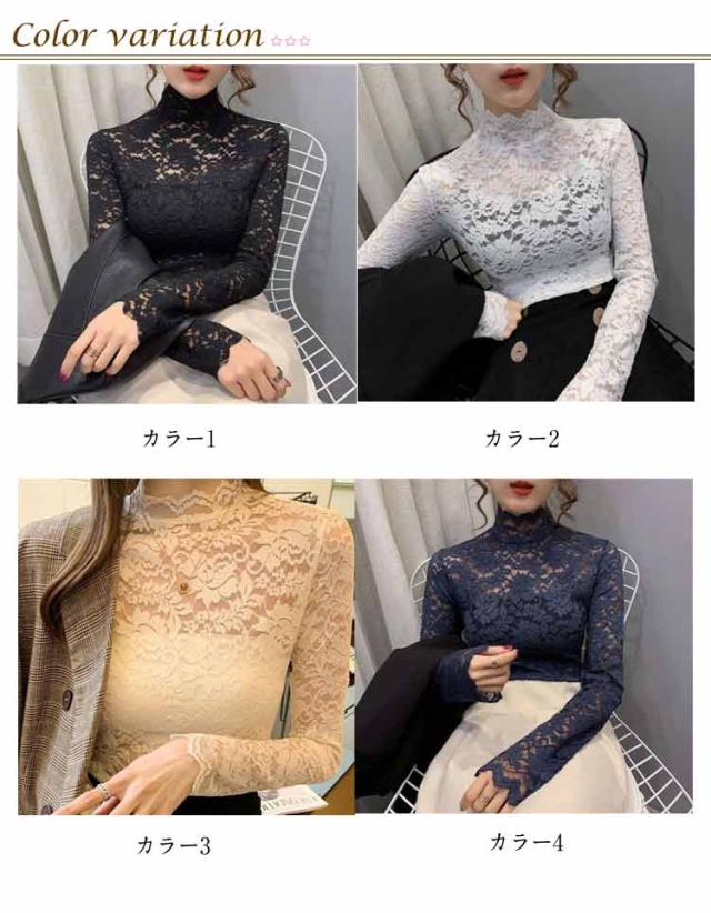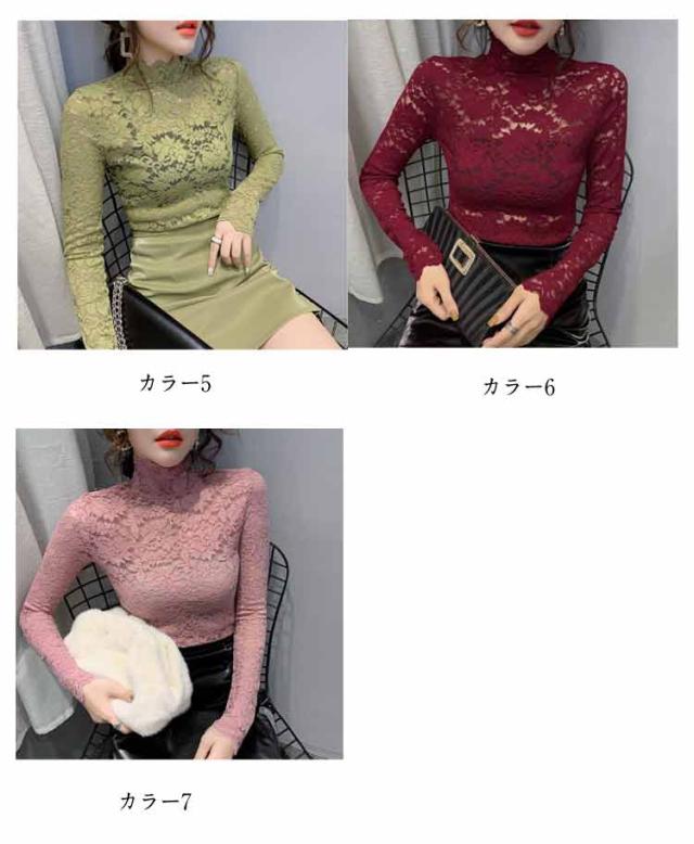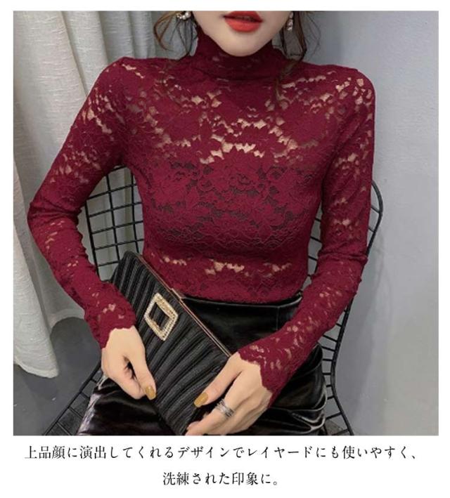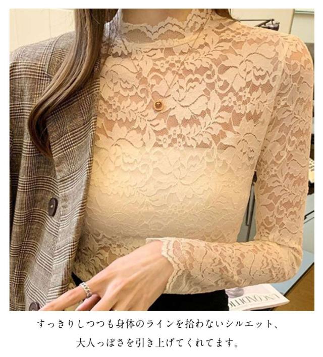 S 長袖 レース 総レース ハイネック レディース シースルー レーストップス 総レース セクシー 透け感 重ねる 大人 インナーシャツ レイヤード フラワーレース M L XL