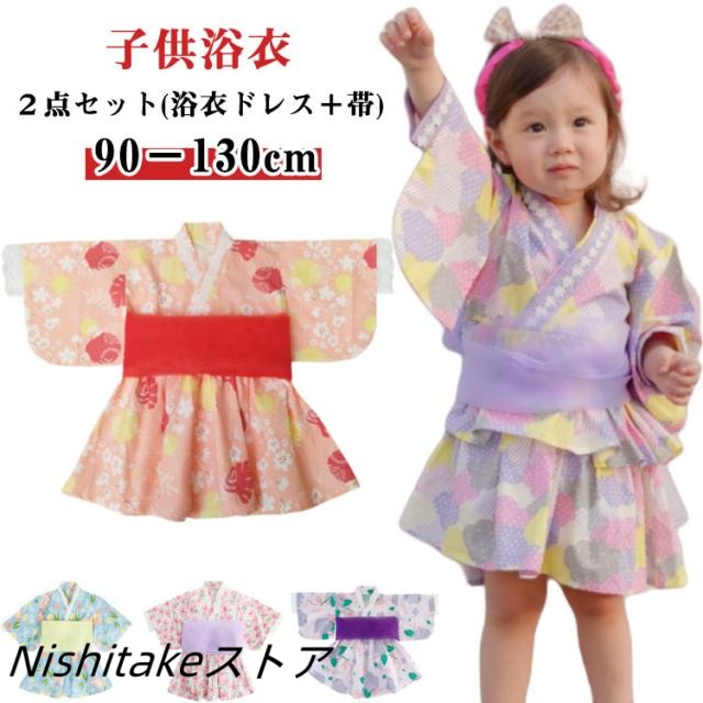 子供 ゆかた 2点セット(浴衣ドレス+帯) 浴衣ドレスセット キッズ 子ども 浴衣セット 子供浴衣 浴衣 ゆかた こども用 浴衣 ふわふわ 女の子 ゆかたドレス 90 100 110 120