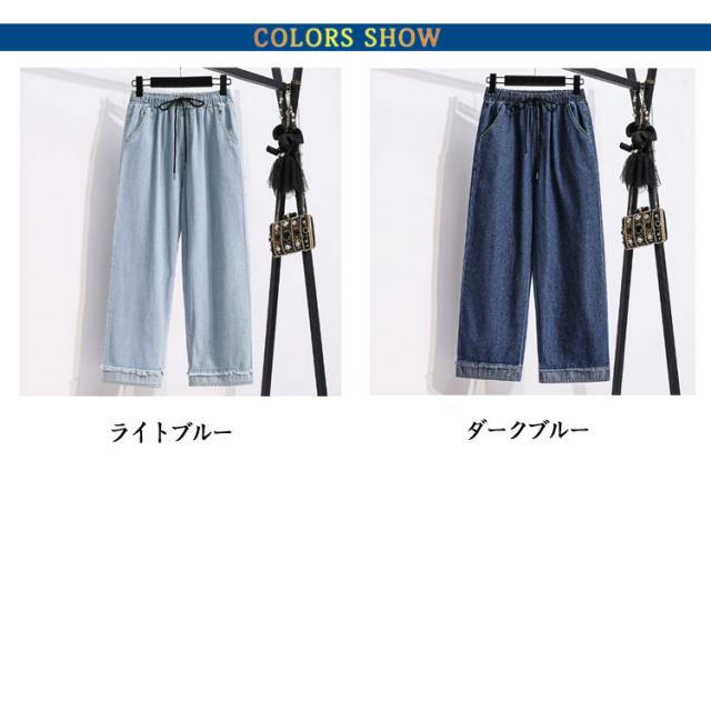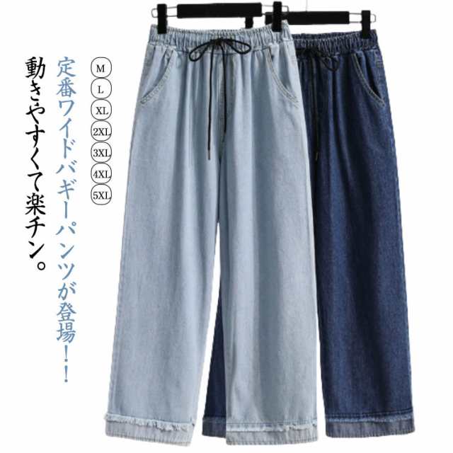 薄手 春 ワイドパンツ レディース 夏 デニムパンツ ウエストゴム ジーンズ ゆったり ボトムス ハイウエスト ロングパンツ 体型カバー 美脚 楽ちん デニムパンツ 脚長効果 女性用 ルームウェア
