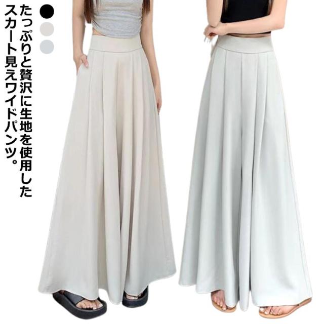 パンツ スカートに見える ワイドパンツ タック入り レディース スカートパンツ フレアパンツ スカンツ ボトムス ズボン ロング スラックス スラックスパンツ スカート 見えて パンツ ガウチョパンツ きれいめ 春夏 30代 40代
