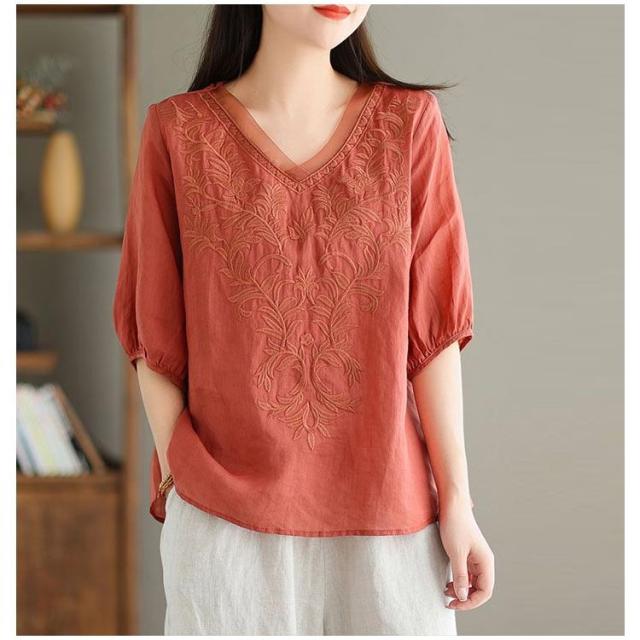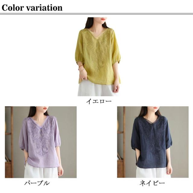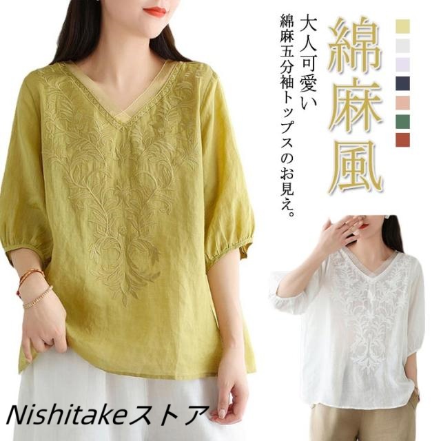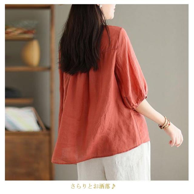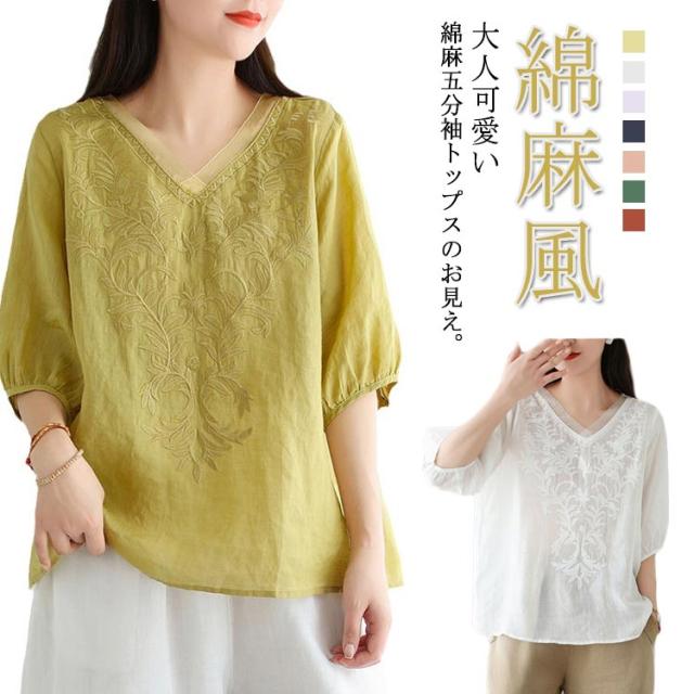 tシャツ 五分袖 春 綿麻風 Tシャツ 薄手 夏 コットン リネン カジュアルトップス 綿麻tシャツ レディース ブラウス 大人可愛い ゆったり ブラウス おしゃれ カットソー エレガント