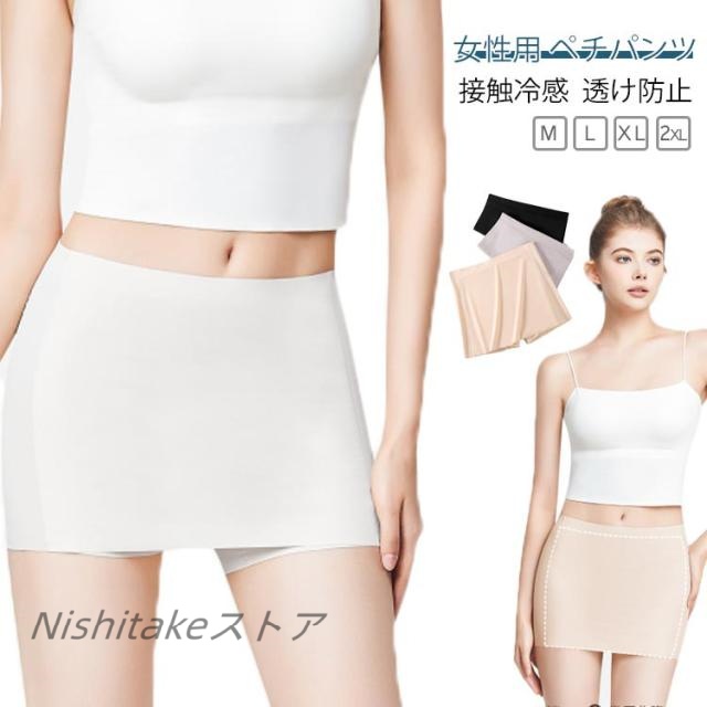 ペチコート レディース 接触冷感 ストレッチ アイスシルク素材 涼しい Yラインカバー インナーパンツ 下着 無地 シームレス 一枚でOK!ペチパンツ スカート ワンピース 透け防止 暑さ対策