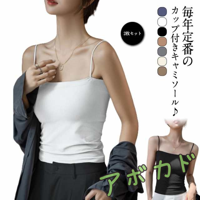 2枚セット キャミソール カップ付き シンプル おしゃれ カップ付きキャミソール 肩紐細 2枚セット リブ カップ付き キャミソール ジュニア レディース ブラトップ カップ インナー ストレッチ カップ付きインナー スクエアネック