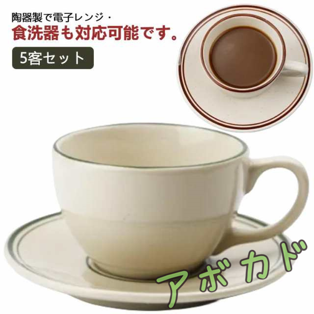 | シンプルで飽きのこないデザインのマグカップ&ソーサーのセットです。【5客セット】 陶器製で電子レンジ・食洗器も対応可能です。 普段使いにちょうどいい約210mlのコーヒーが入ります。 珈琲以外にも様々な飲み物を入れてお楽しみください。 | |
