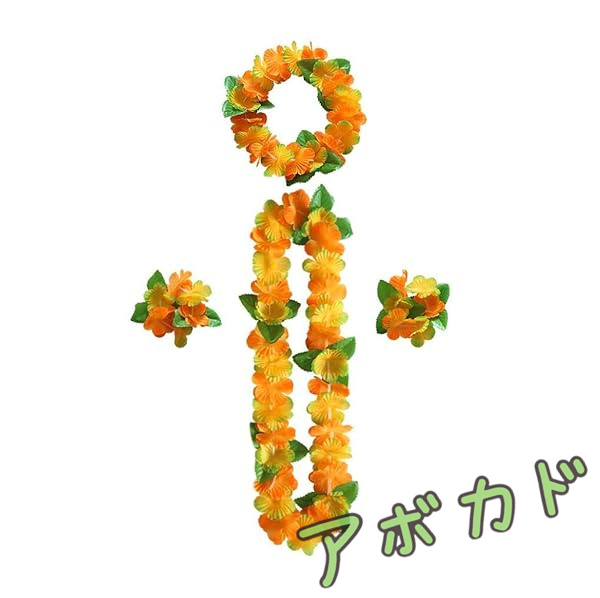 レイ ハワイアンレイ フラダンス ハワイ花輪 花冠 腕輪 4点セット ハワイ パーティグッズ イベント 撮影小道具 造花 (4)