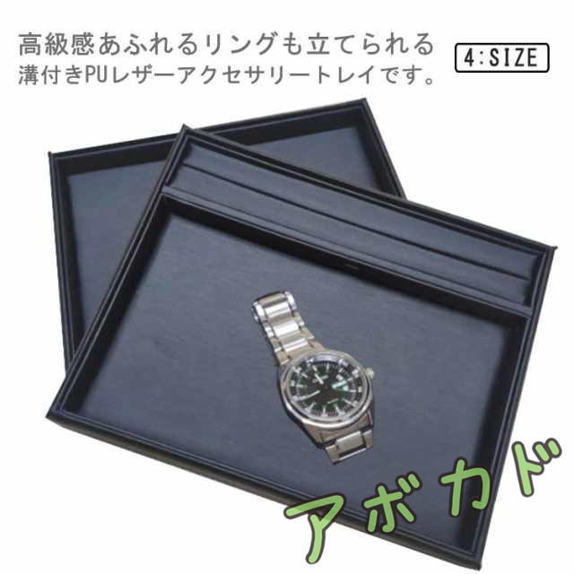 | 高級宝石店や、ブランドショップなどの店頭での接客や販売にご利用いただける、高級感あふれるリングも立てられる溝付きPUレザーアクセサリートレイです。 溝部分・作業スペースには、高品質な素材を採用し、クッション性に富んだ構造で、大切なアクセサリーや宝石等を傷つけることなく保管することができます。 エレガントで上品な雰囲気のアクセサリートレイ。お気に入りのジュエリーやアクセサリーを飾って素敵なお部屋のインテリアにも、展示会や店舗ディスプレイとしてもお使いいただけます。 美容室や床屋、ネイルサロン、エステサロンなどのお店でお客様からネックレス、ピアス、イヤリングなどのアクセサリーや腕時計やメガネなどをお預かり、保管する際にもご使用いただけます。 | |