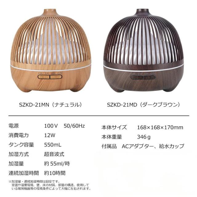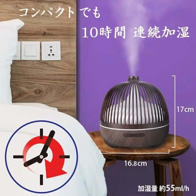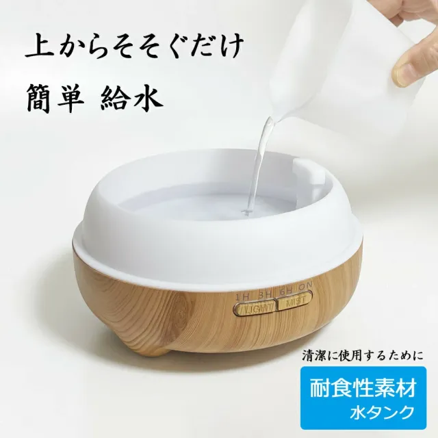加湿器 卓上 アロマディフューザー LED 間接照明 超音波 上から給水 オフィス 小型 アロマ加湿器 ライト ランプ おしゃれ コンパクト ミニ 寝室 枕元 和室 和風 プレゼント お祝い ギフト 上部給水 お手入れ簡単 木目調 ナチュラル
