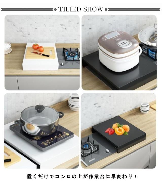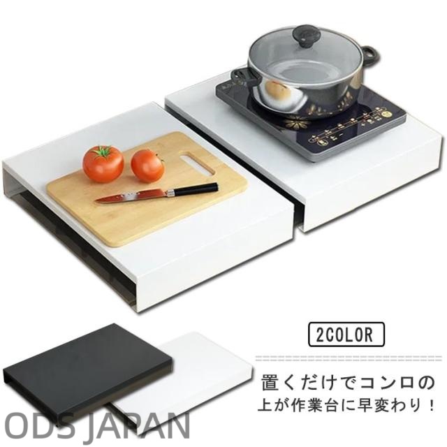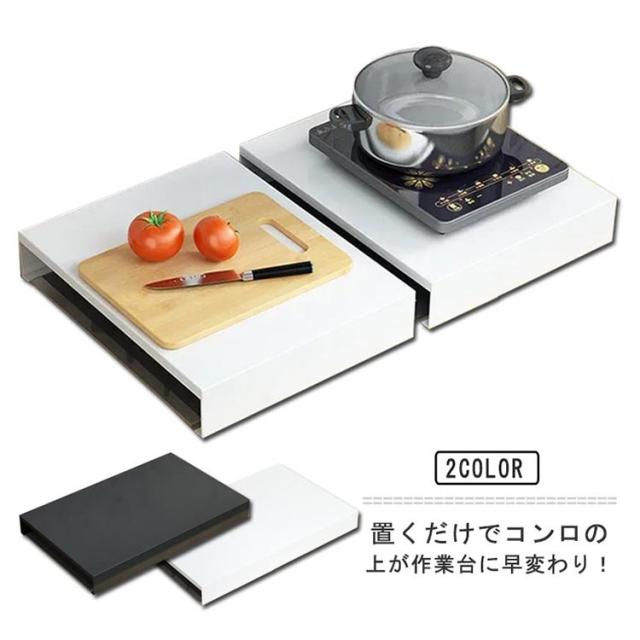 ガスコンロ コンロ上 カバー 作業台 作業スペース キッチン作業台 調理スペース 一時置き ステンレス キッチン 台所 収納 隙間収納 油はねガー 食材置き コンロガード キッチン収納 鍋置き 一人暮らし ホワイト ブラック