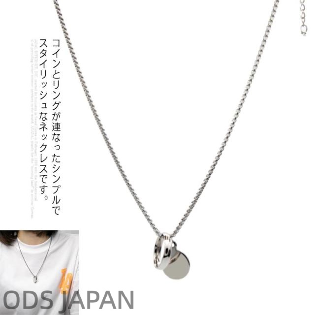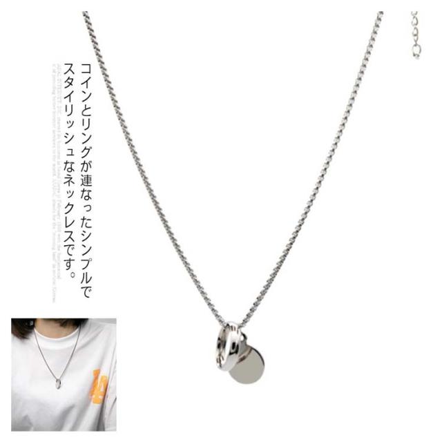 ネックレス リング チタン ステンレス製 メンズ レディース 金属アレルギー対応 ヒップホップ ストリート風 シンプル シルバー おしゃれ 長さ50cm 誕生日 記念日 ギフト プレゼント アクセサリー 送料無料