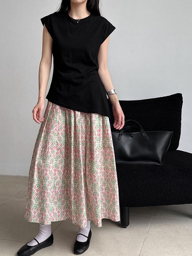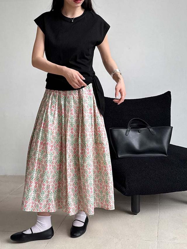 花柄が目を惹く、大人かわいいフレアスカート