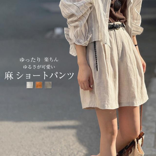 ハーフパンツ レディース リネン 夏 ショートパンツ ショーパン パンツ ハーフ丈 タックパンツ ハイウエスト 麻 ボトムス ワイド 春夏 オシャレ おしゃれ 可愛い ナチュラル 生成り カ かわいい