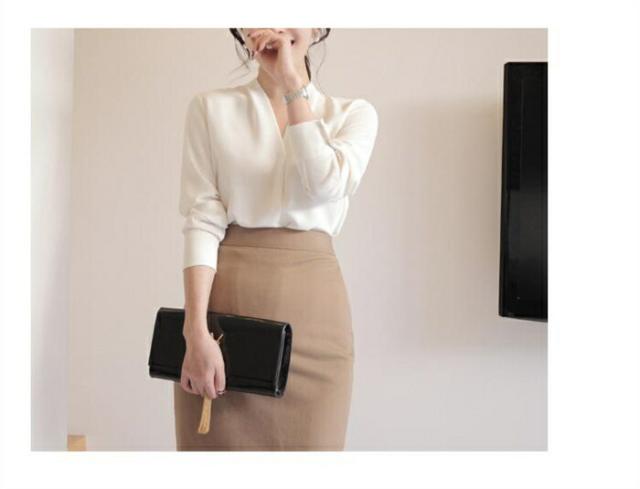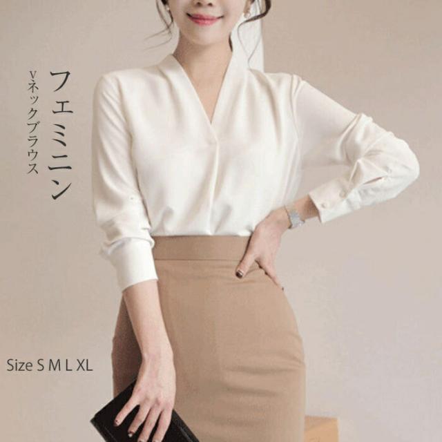 ブラウス フォーマル 長袖 レディース vネック シャツ オフィストップス スーツインナー 白シャツ おしゃれ トップス 無地 綺麗め お洒落 カジュアル シンプル 同窓会 発表会 通勤 体型カバー