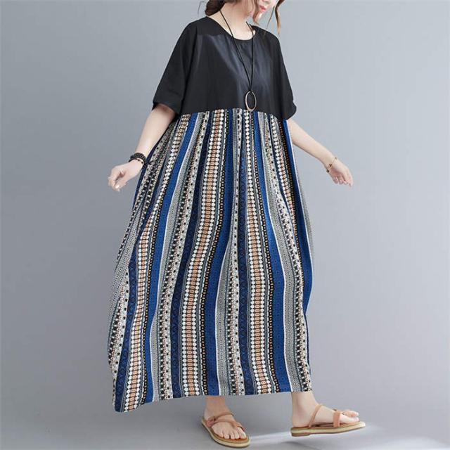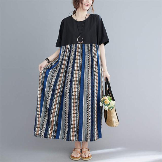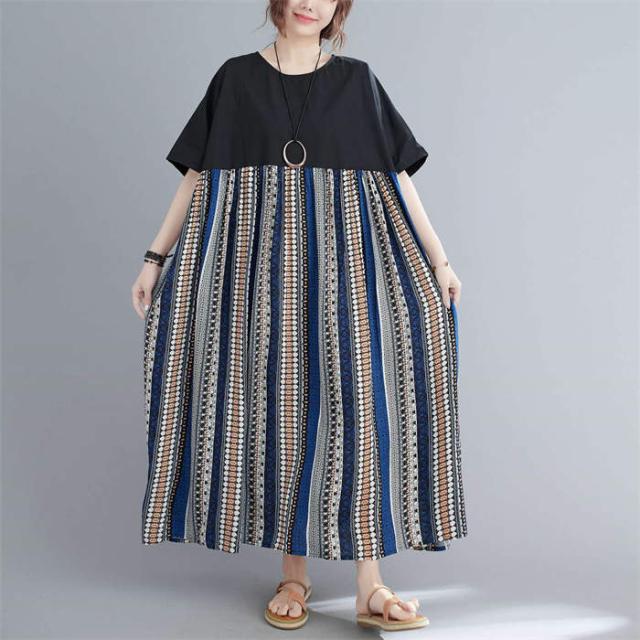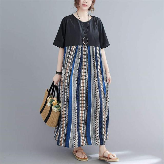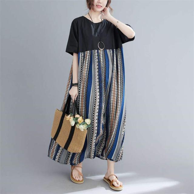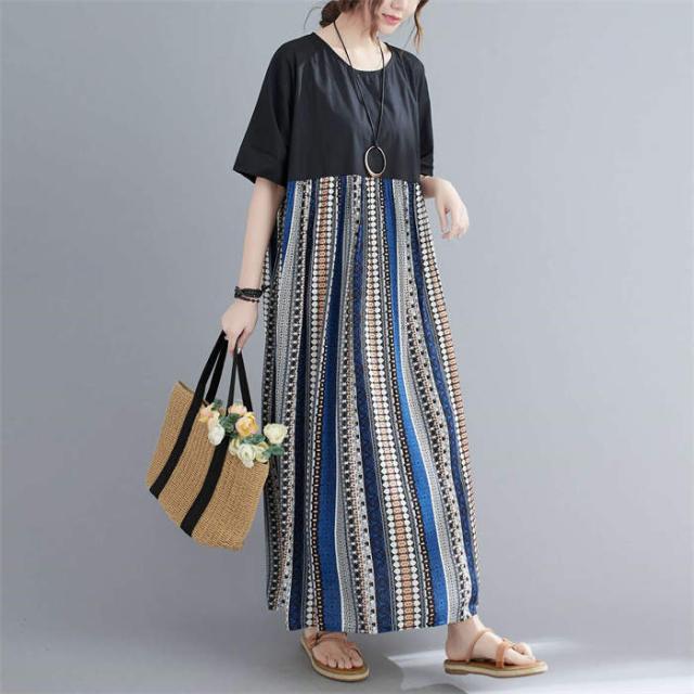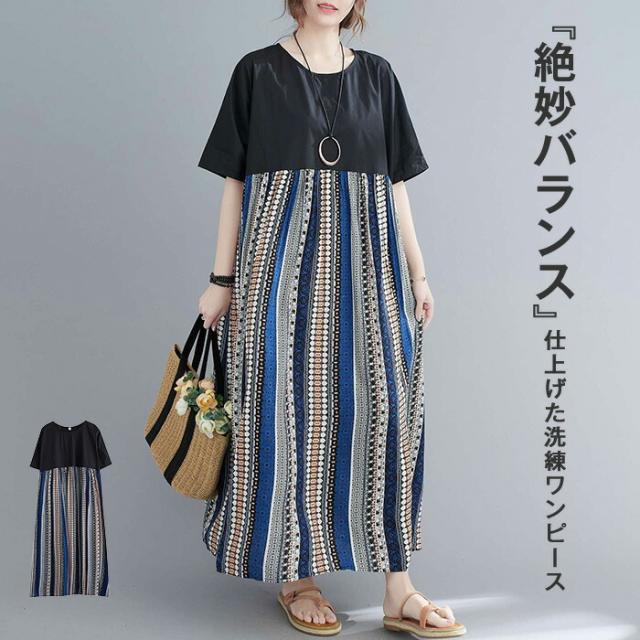 ワンピース 半袖 レディース きれいめ 夏 切り替え リゾートワンピース クルーネック 薄手 大人 マキシ丈スカート ロングスカート 楽ちん ゆったり カジュアル プルオーバー 体型カバー リ お洒落