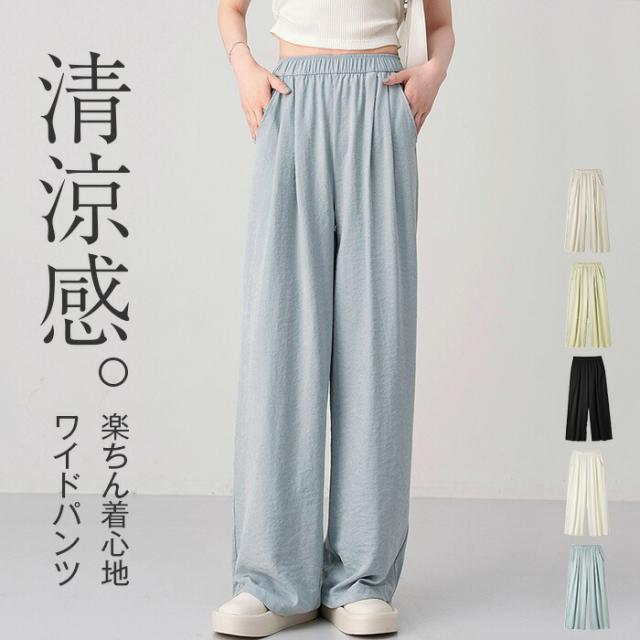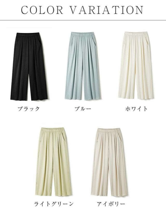 パンツ レディース 夏 ワイド ワイド レディースファッション 新登場! ブラック ブルー ホワイト ライトグリーン アイボリー M L