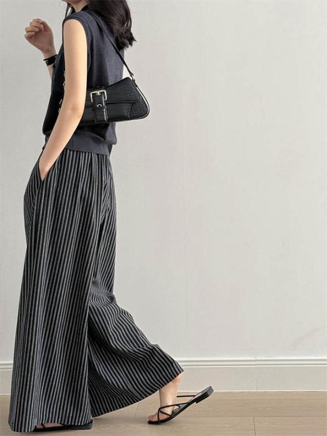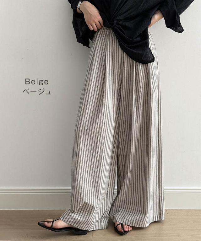 ストライプパンツ レディース 春 夏 レディースファッション 新登場! ベージュ ブラック ネイビー M L