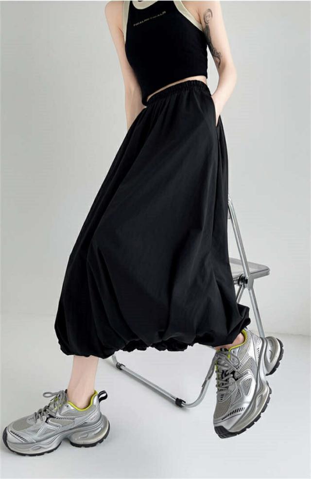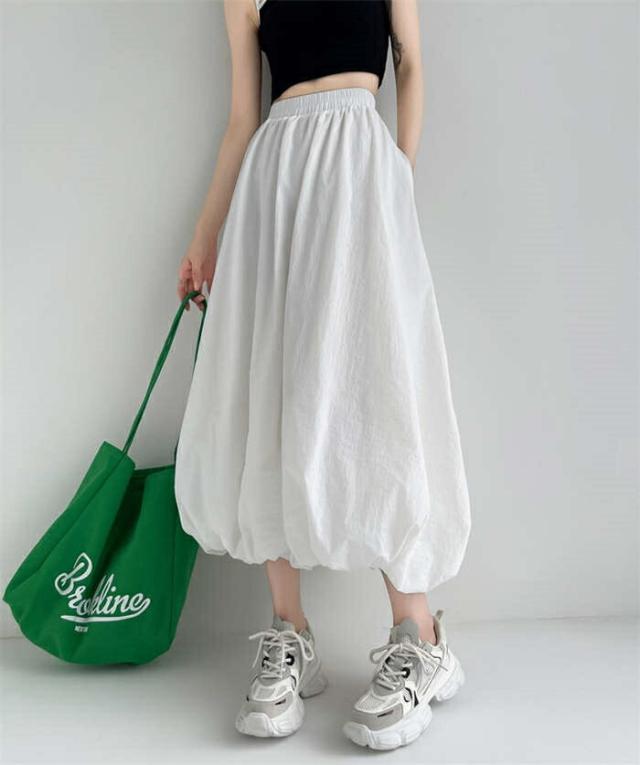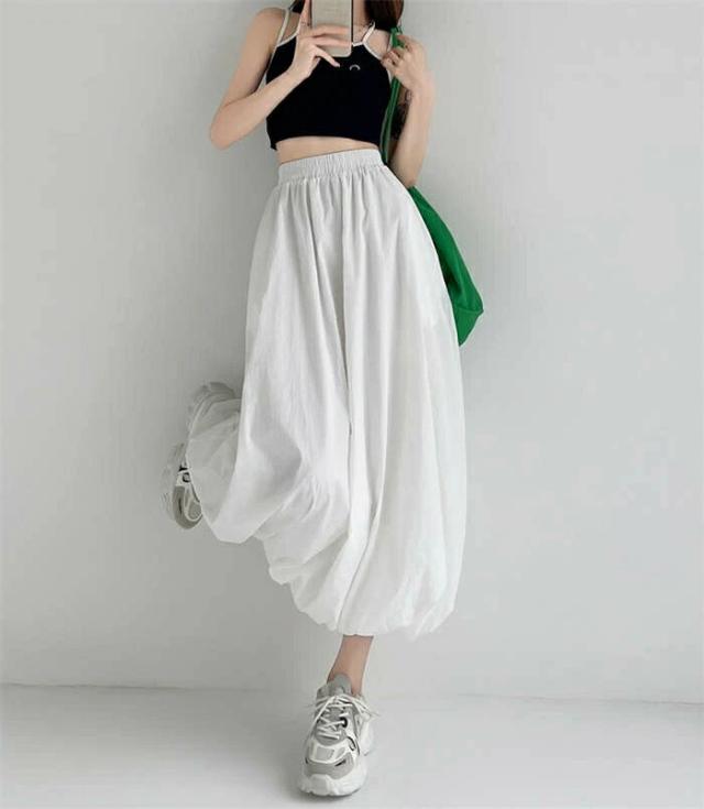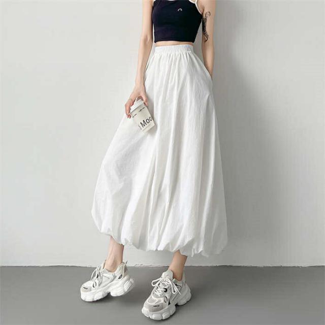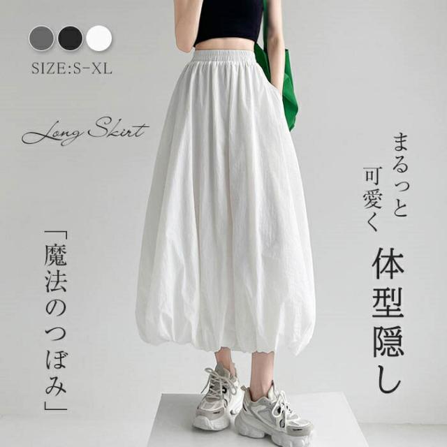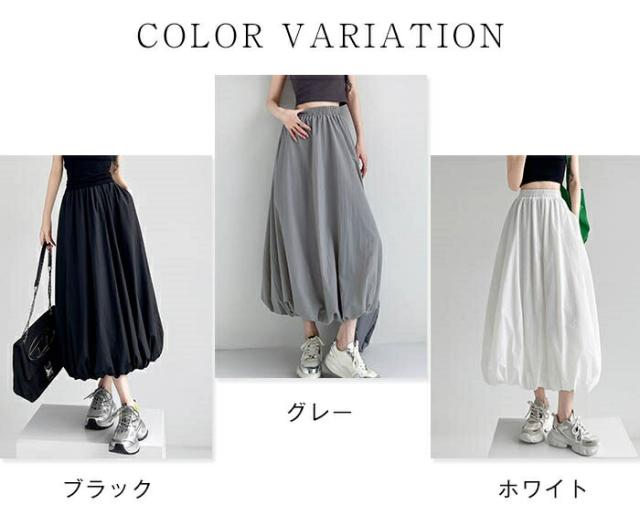 バルーンスカート レディース ロングス ボトムス スカート 通販 ブラック グレー ホワイト S M L XL