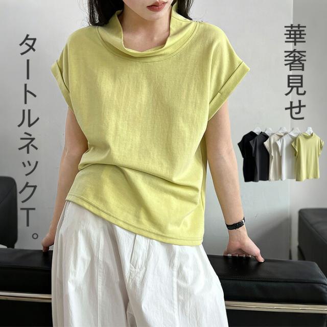 Tシャツ 半袖 タートルネック トップ トップス Tシャツ カットソー 人気 ホワイト アイボリー ライムイエロー ブラック M L