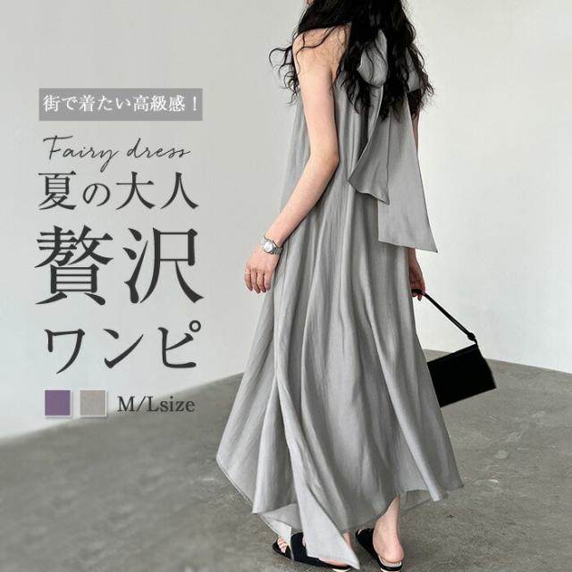 ワンピース 夏 マキシワンピース リゾ レディースファッション 新登場! グレー ラベンダー M L