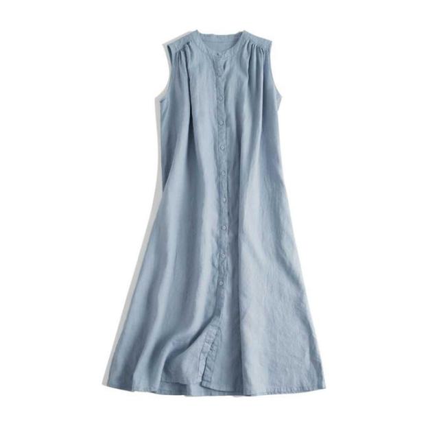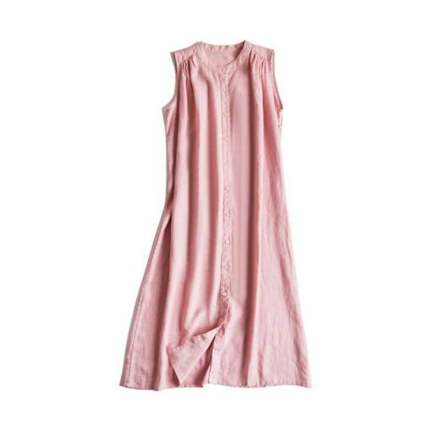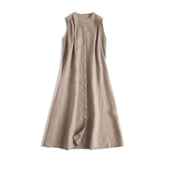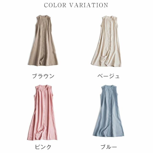 ワンピース レディース ロング ロングシャツ ノースリーブ ワンピ シャツワンピース ギャザー シャツワンピ 綿麻調 薄手 前開き 春 夏 カジュアル 無地 可愛い シンプル 日常 ベーシッ オフィス