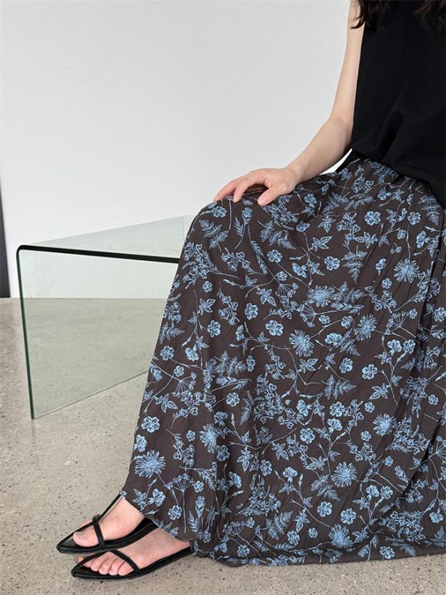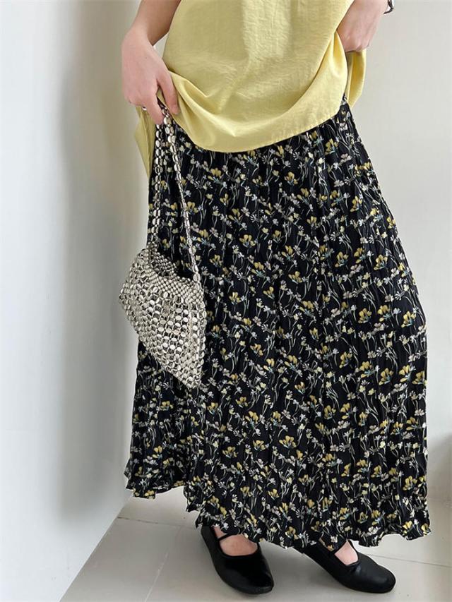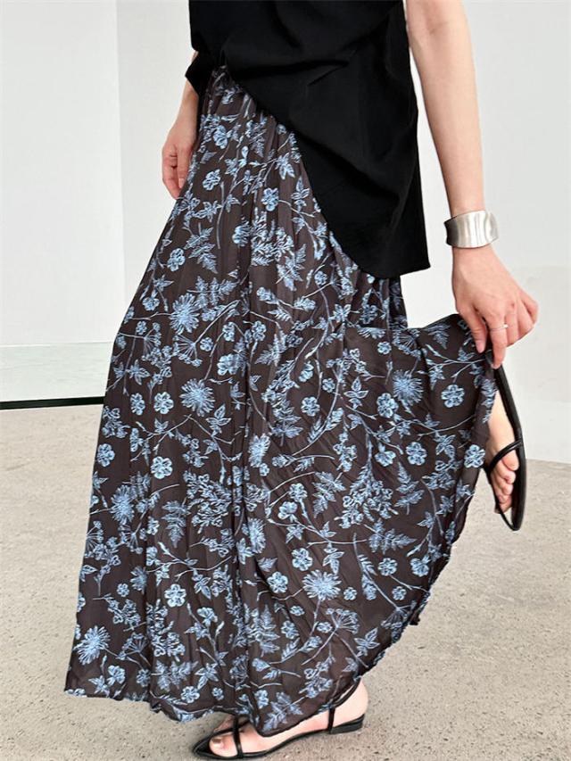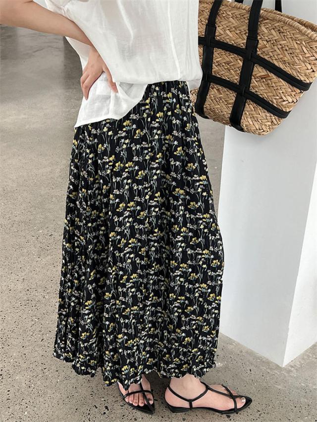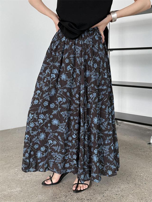 ロングスカート マキシスカート 春夏 フレアスカート レデイース スカート ロング リゾート ボトムス 総柄 ウエストゴム 体型カバー 涼しい 華やか 裏地 花柄 エスニック風 カジュアル ふんわり