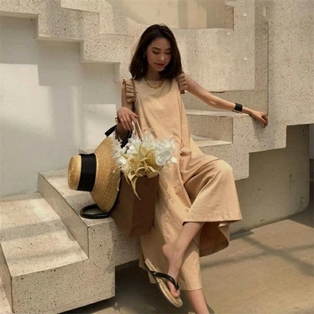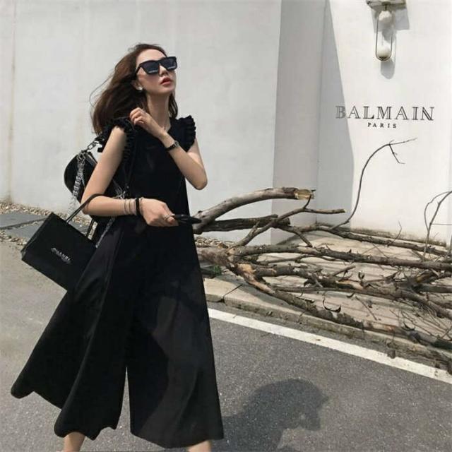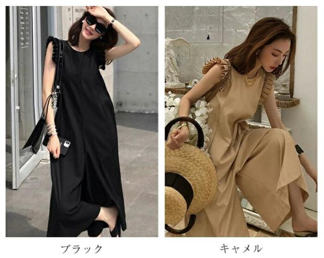 オールインワン レディース つなぎ フリル サロペット ワイドパンツ フレンチスリーブノースリーブ 着痩せ 服 春 夏 ワンピース きれいめ ロング丈 パンツ カジュアル おしゃれ 旅行 海 かわいい