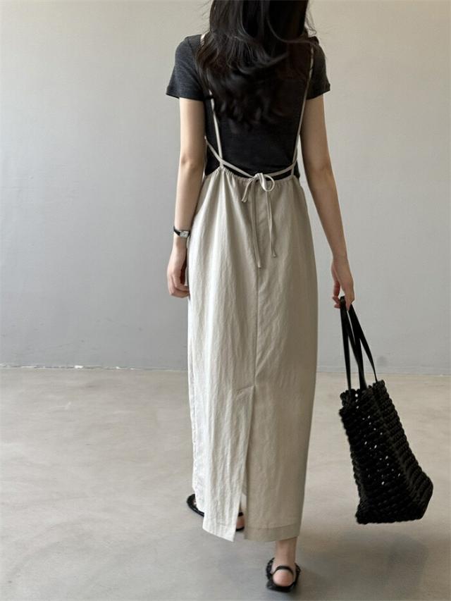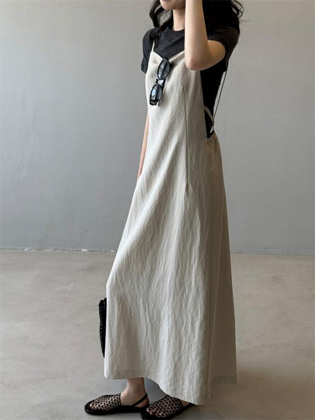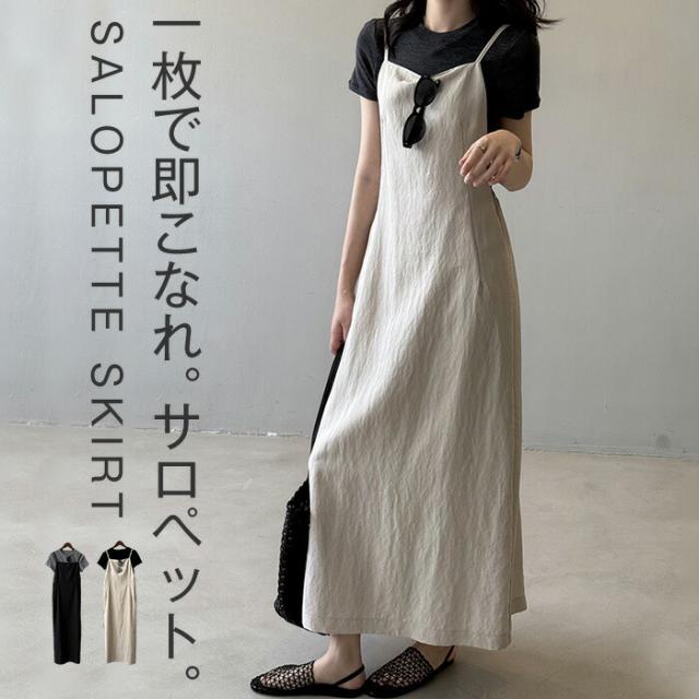 サロペット スカート キャミワンピース ジャンパースカート 夏 レディース ノースリーブ 袖なし ロング サロペットスカート ワンピース ロングワンピース ジャンスカ 薄手 ドレス きれいめ 着?せ