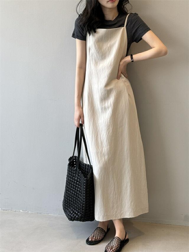 サロペット スカート キャミワンピース オフホワイト ブラック M L