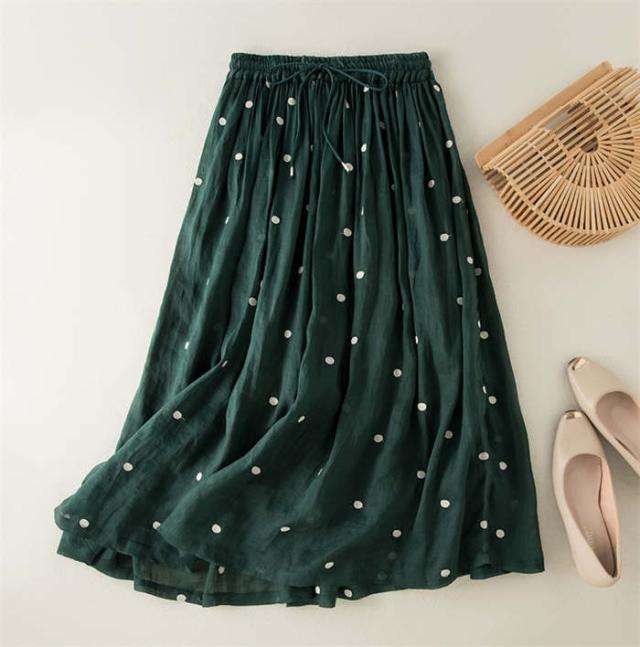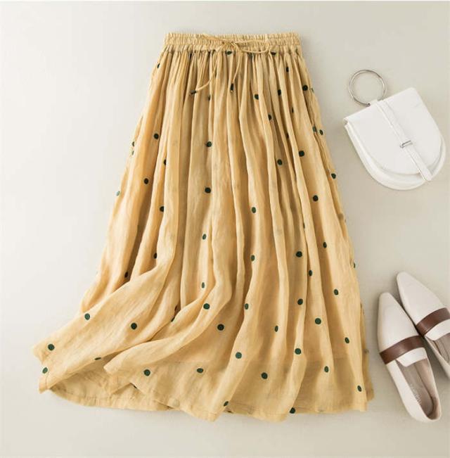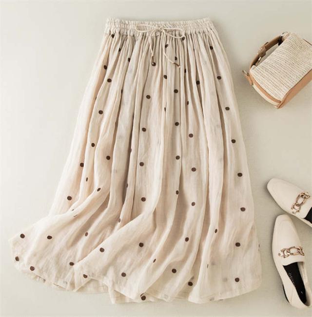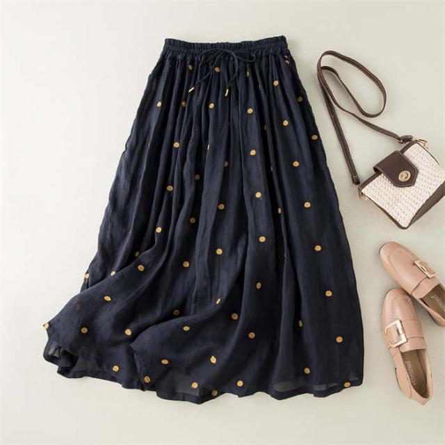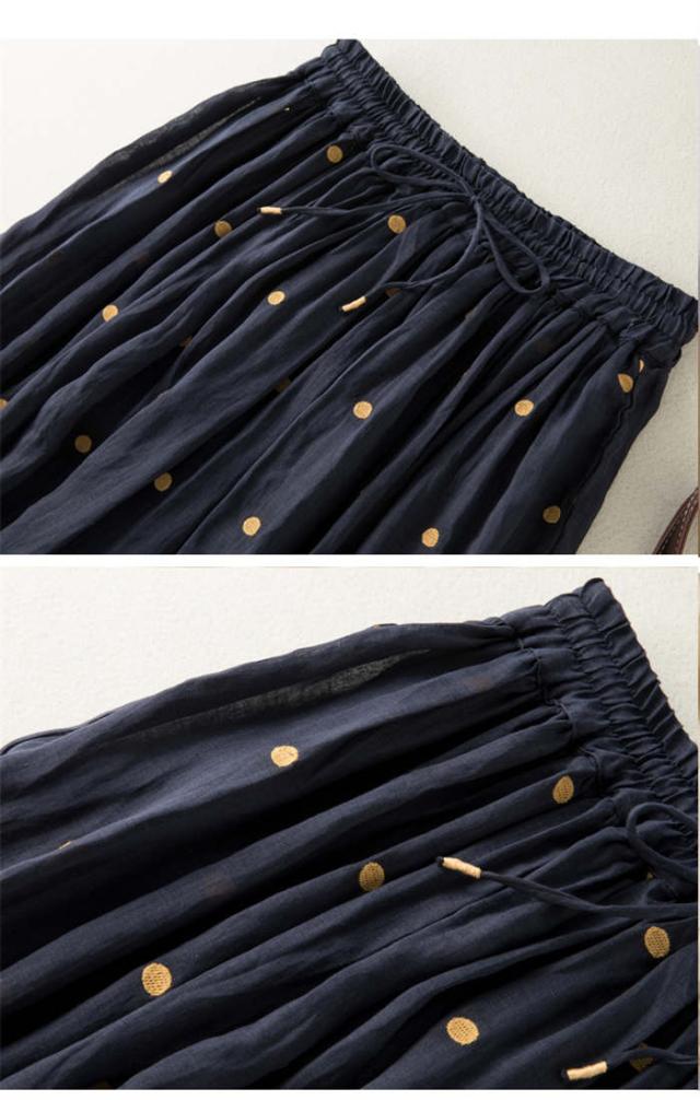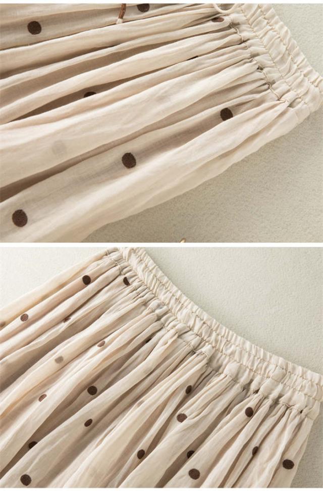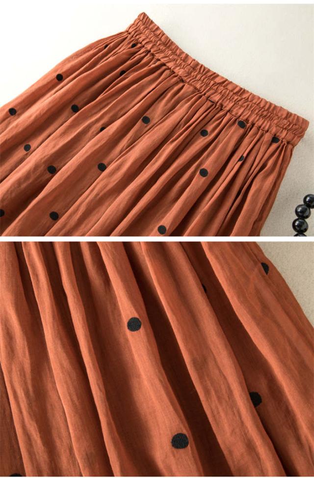 ロングスカート レディース フレアスカート ロング丈 ボトムス ドット柄 春 夏 Aライン 着痩せ 水玉スカート 裏地付き ウエストゴム シンプル おしゃれ フェミニン 女子会 フォーマル ふんわり