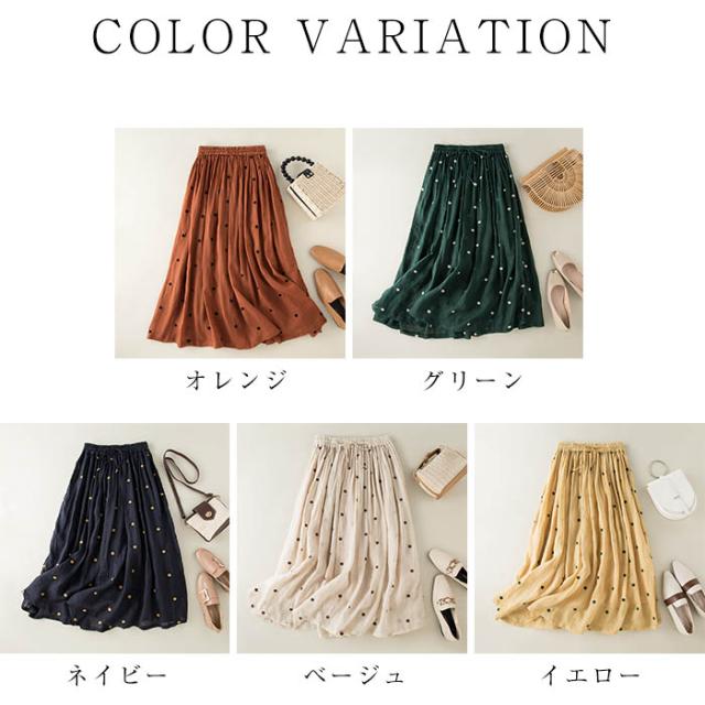 ロングスカート レディース フレアスカ レディースファッション 通販 オレンジ グリーン ネイビー ベージュ イエロー M L XL 2XL