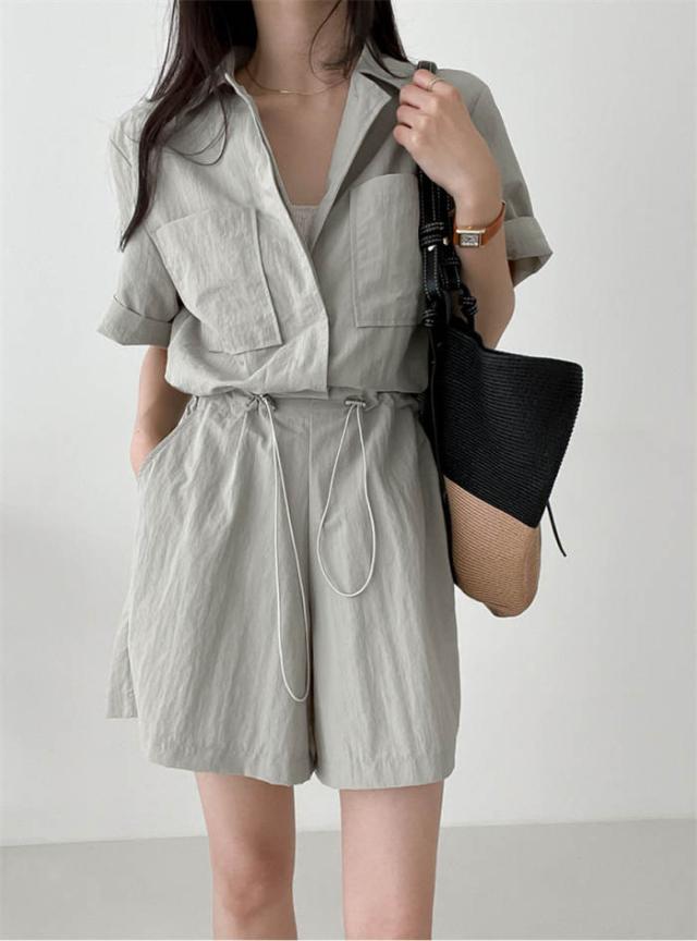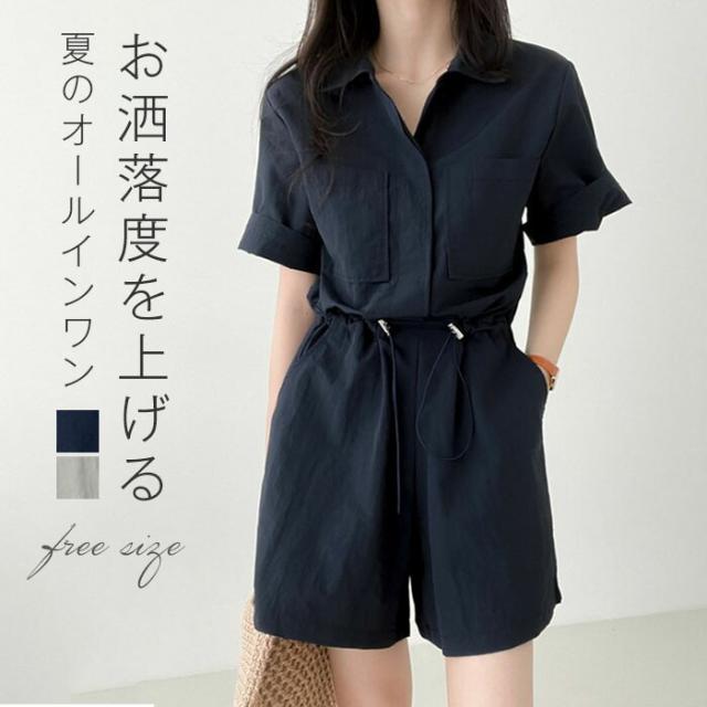 オールインワン レディース パンツスーツ オーバーオール 夏 半袖シャツ 普段着 着痩せ 大人 ショートパンツ ワイドパンツ ポケット付き 美ライン 涼しい 着やせ サロペット シンプル お きれいめ