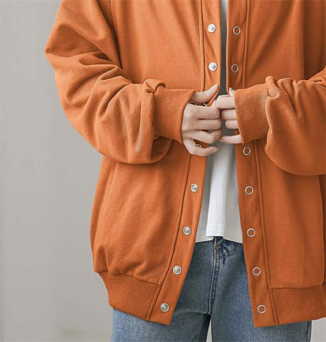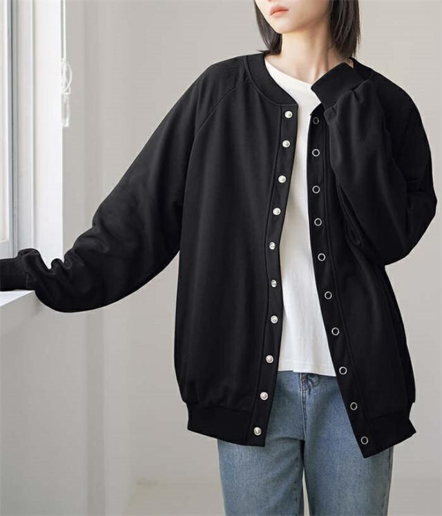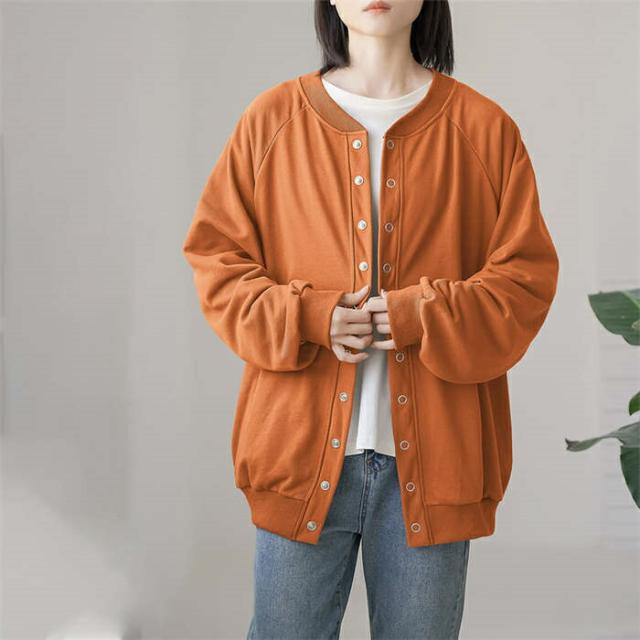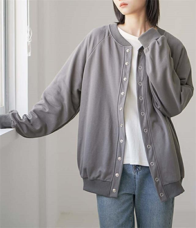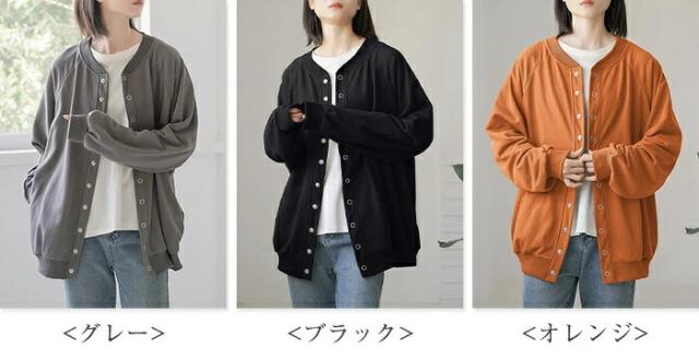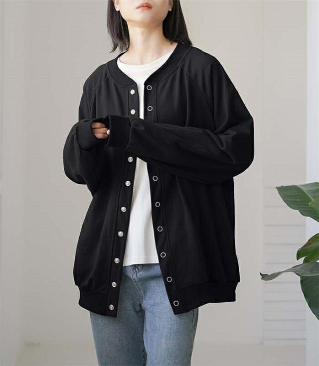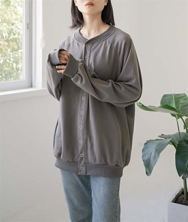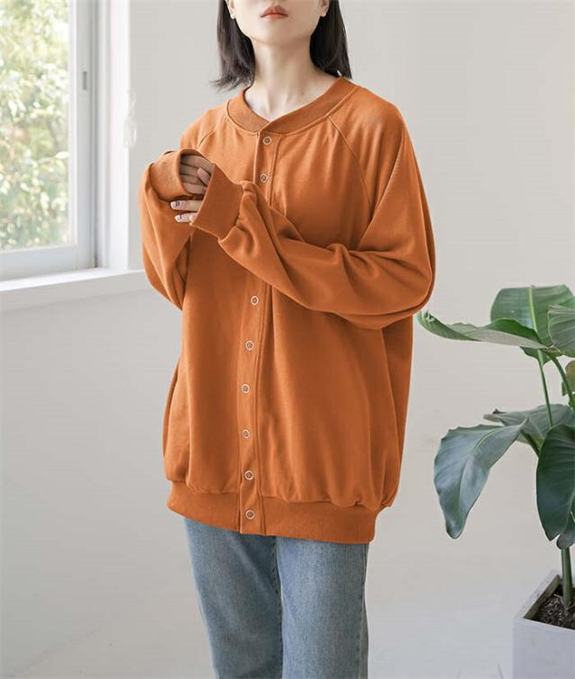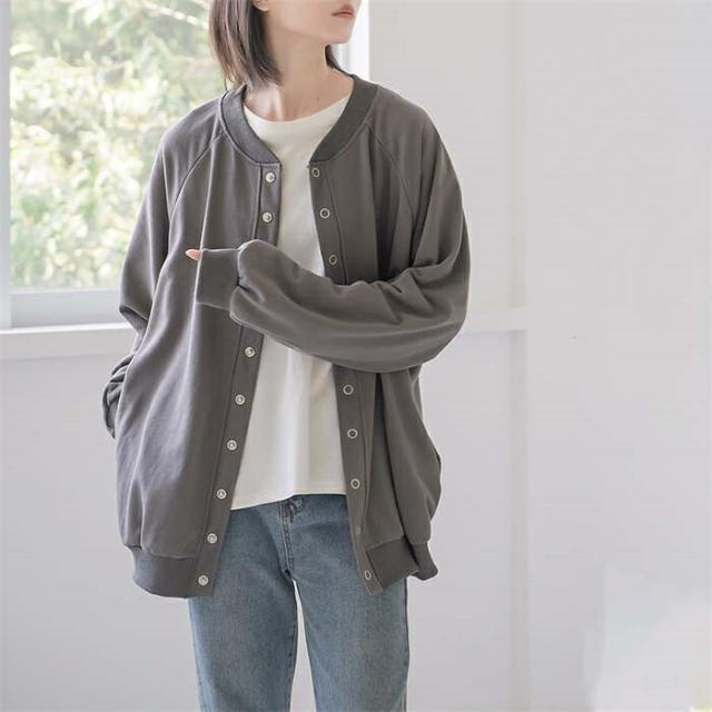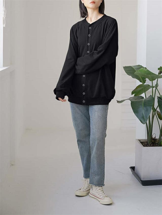カーディガン レディース トップス クルーネック 長袖 無地 ゆったり 前開き 羽織り スウェット トレーナー アウター ライトアウター レイヤード 丸首 羽織 チュニック お尻が隠れ スナップボタン