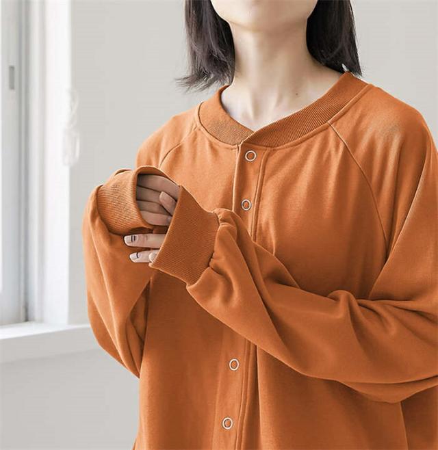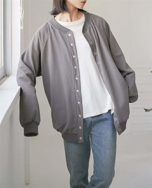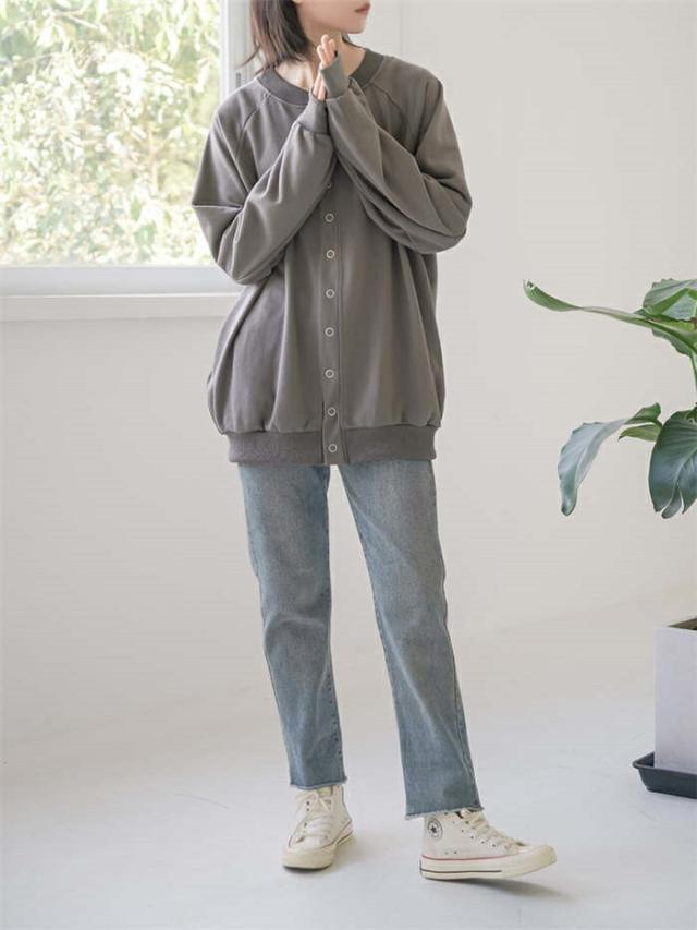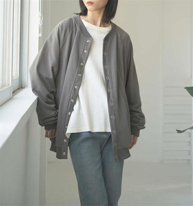 肌ざわりが心地よいスウェット地のカーディガンです。