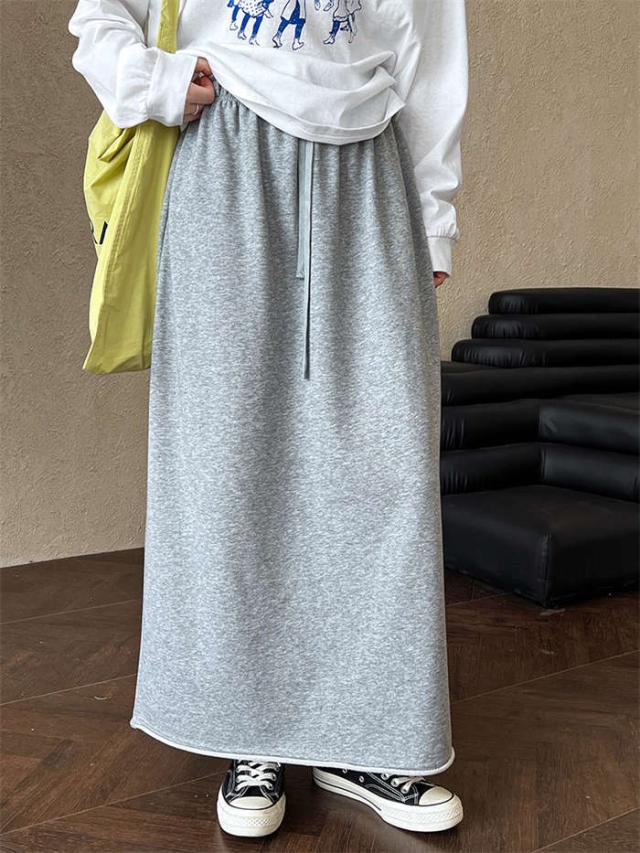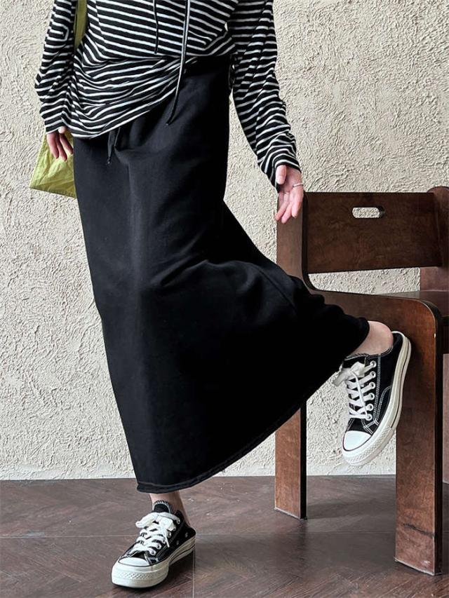 スカート スウェット レディース ボトムス スウェットスカート ロングスカート マキシ丈 ロング丈 マキシスカート ハイウェスト ゴム ロング タイト Iライン きれいめ シンプル コットン 綿 無地