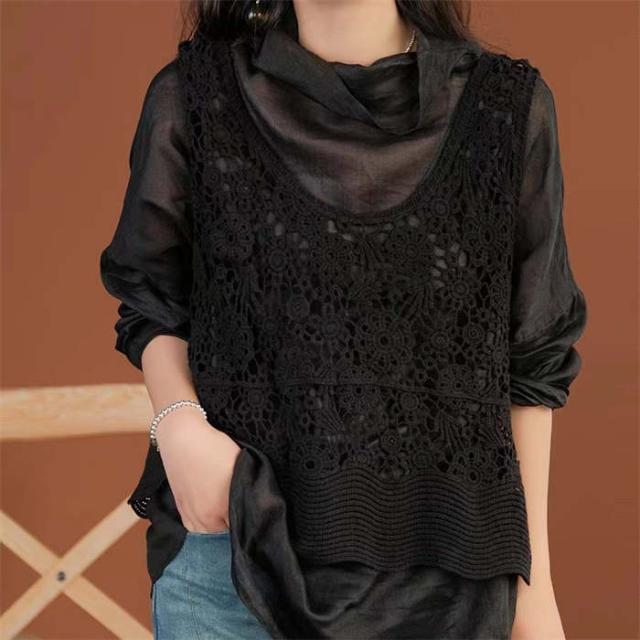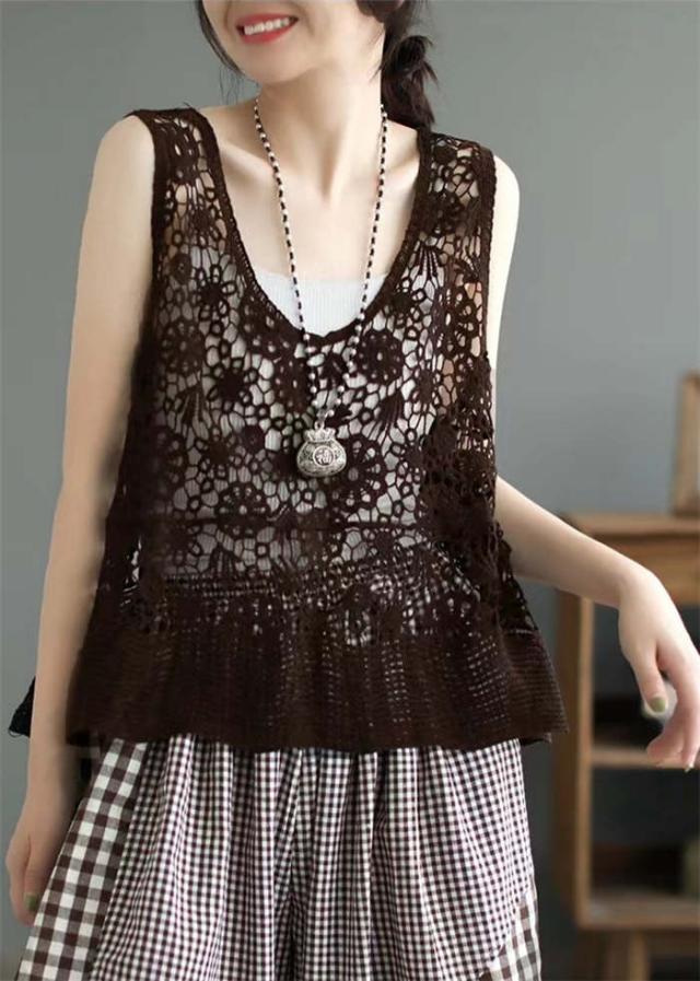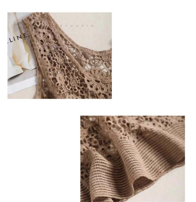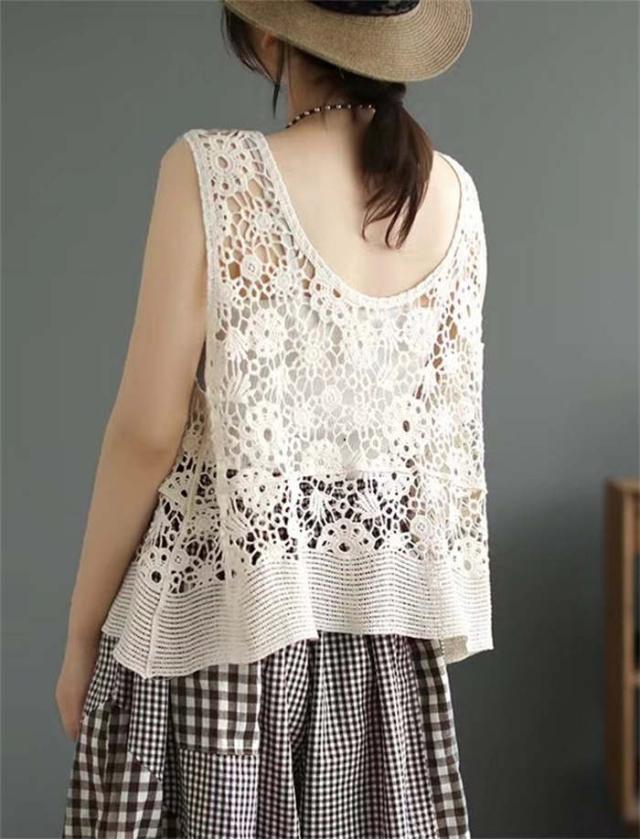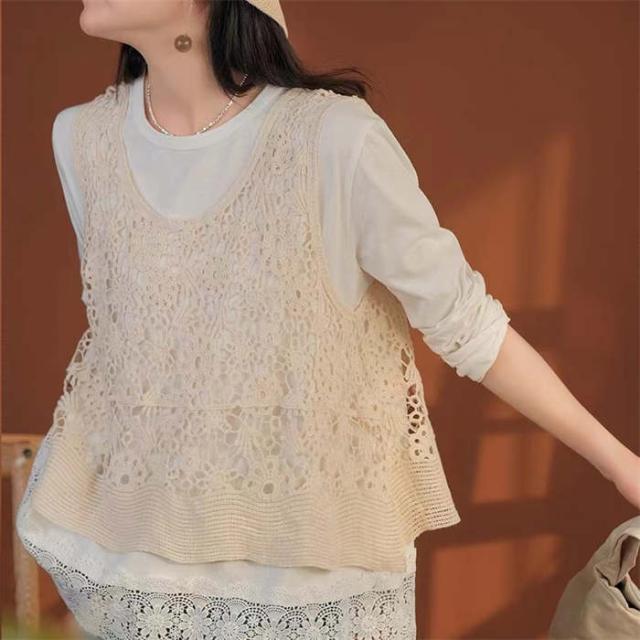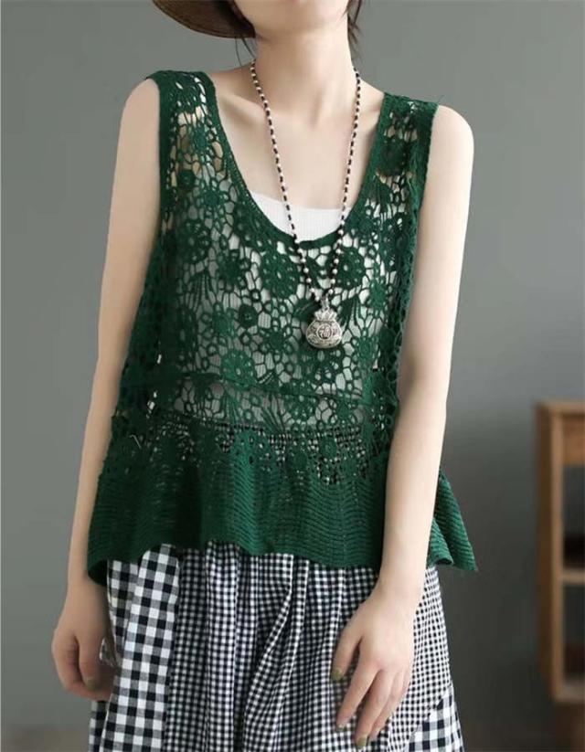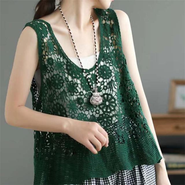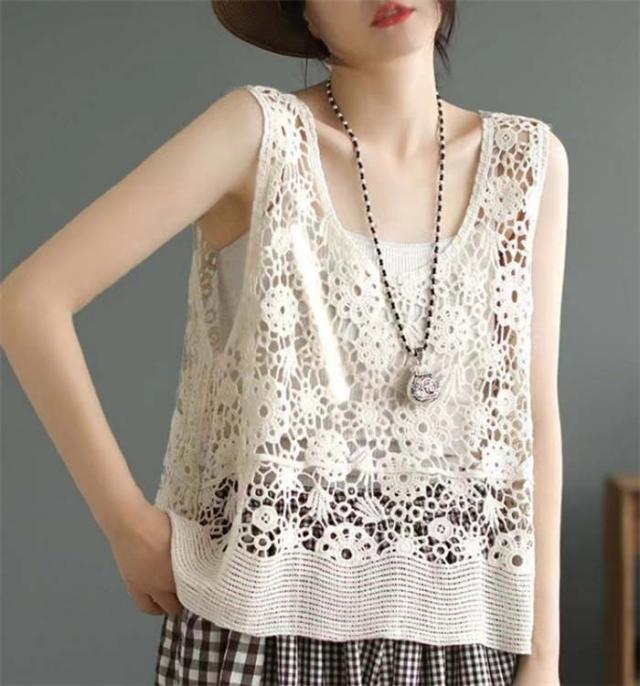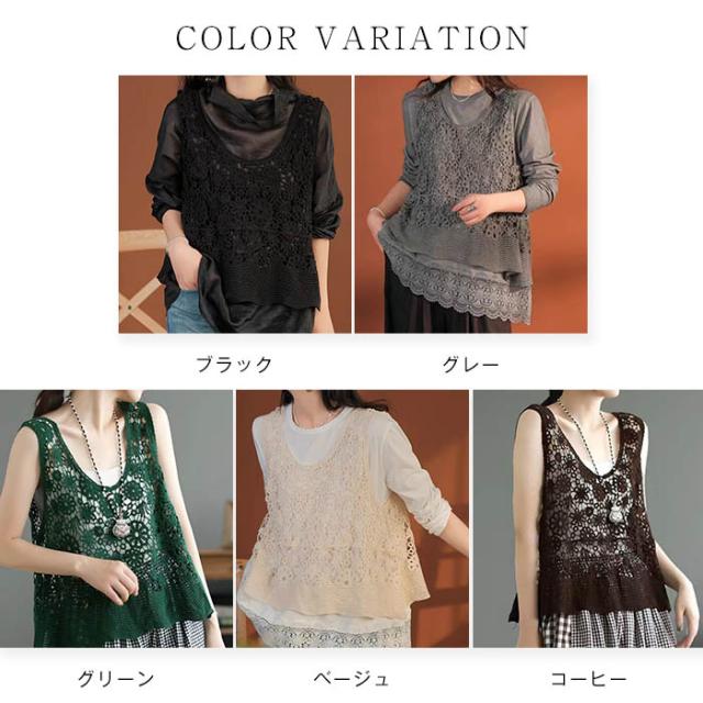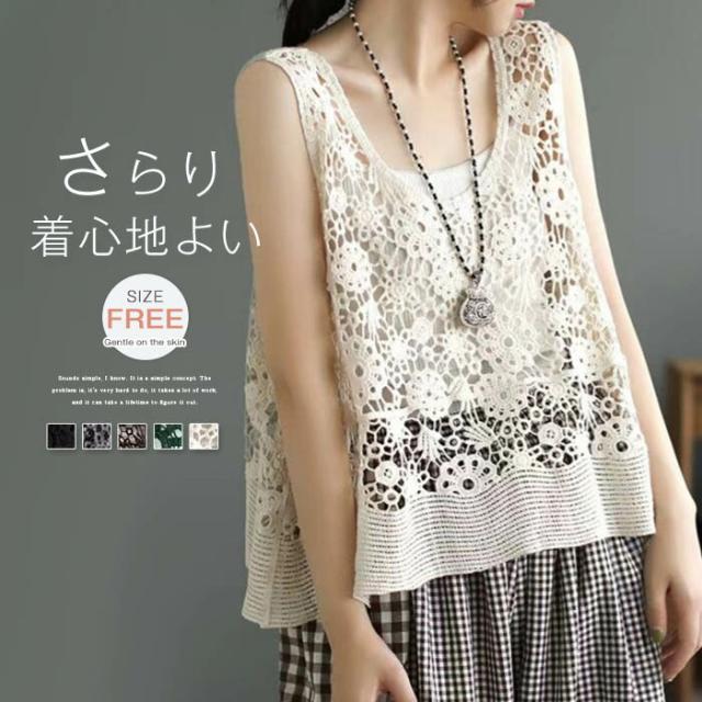 ベスト レディース 春夏 ニットベスト 透かし編み トップス クロシェ編みベスト 大きいサイズ プルオーバー Vネック ノースリーブ 花柄 サマーニット レイヤード レース きれいめ カジュ かぎ編み
