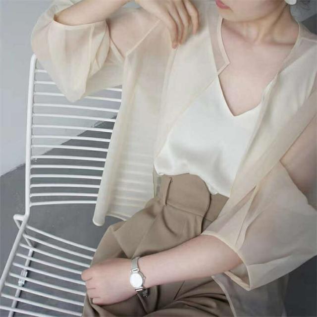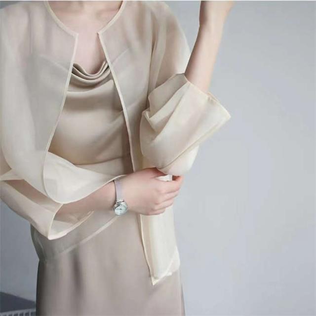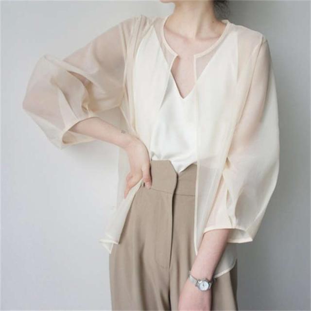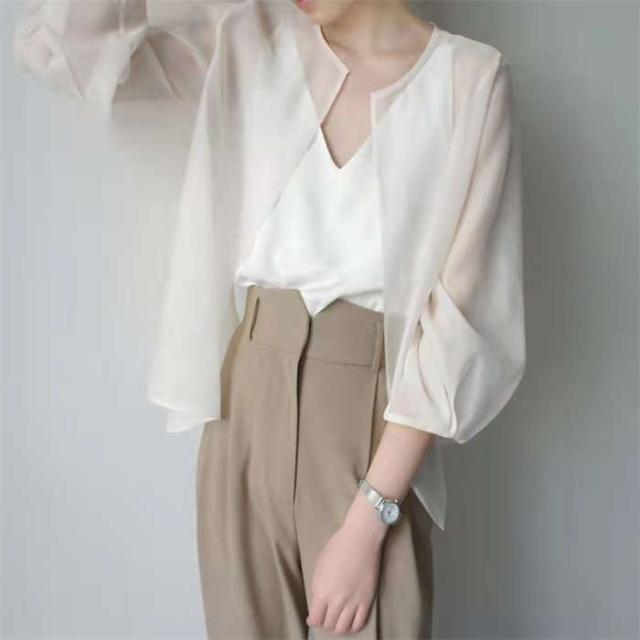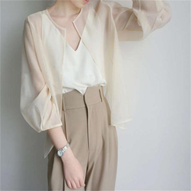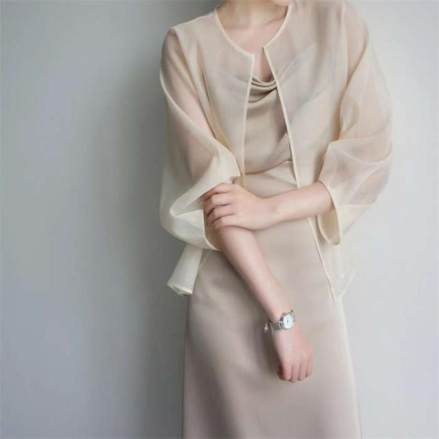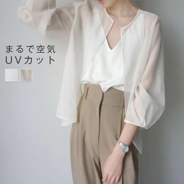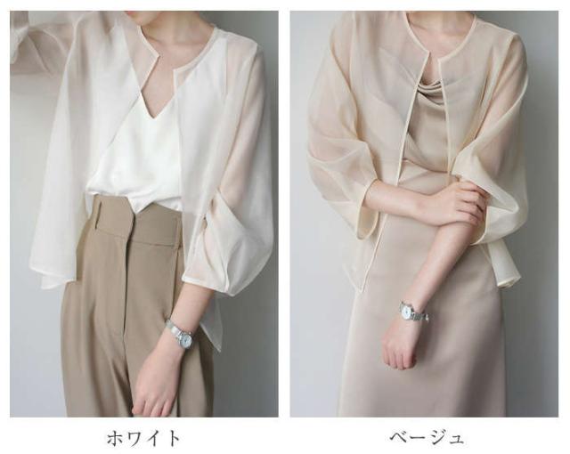シアージャケット カーディガン ボレロ 羽織 無地 長袖 上着 夏 春 レディース シースルー シアーカーデ ジャケット シアー ライトアウター ゆったり 透け ノーカラー レイヤード 通勤 透かし感