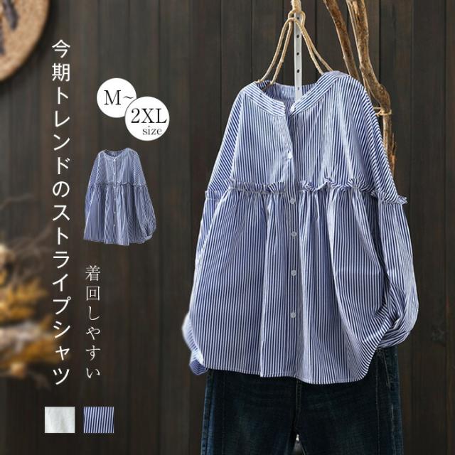 シャツ レディース ストライプ ブラウ レディースファッション 超目玉商品 ホワイト ブルー M L XL 2XL