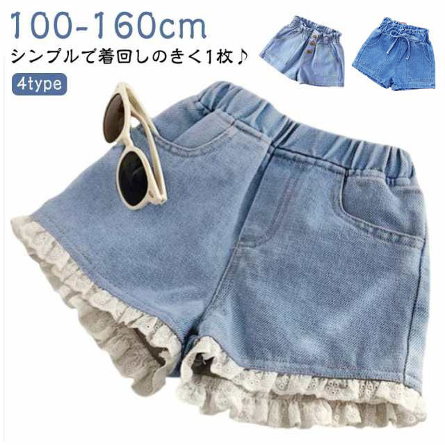 女の子 キッズ デニムパンツ デニム ショートパンツ 子供服 ボトムス カジュアル ガールズ 女児 フリル レース ジーンズ パンツ 夏 夏服 ポケット 短パン 100 可愛い