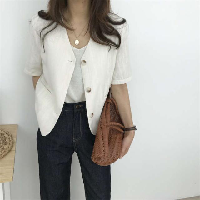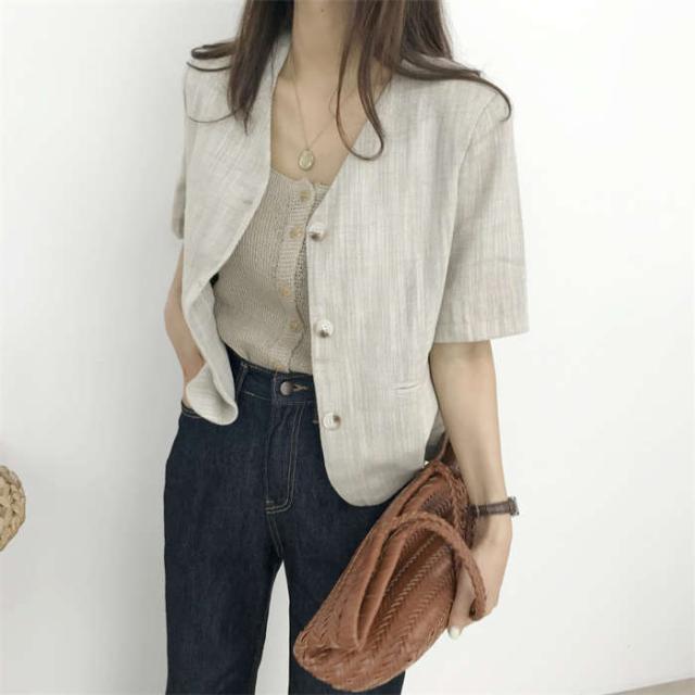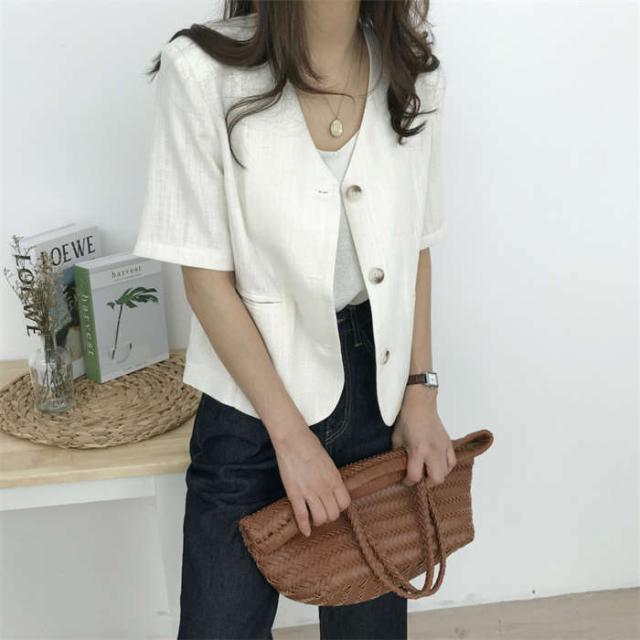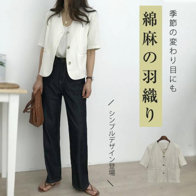 ジャケット レディース リネン 半袖 コート ジャケット 豊富 ホワイト ベージュ S M L XL