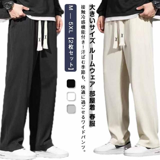 夏服 アイスシルクパンツ メンズ ワイ メンズファッション 新登場! ブラック+オフホワイト ブラック+ライトグレー オフホワイト+ライトグレー ブラック2枚 オフホワイト2枚 ライトグレー2枚 M L XL 2XL 3XL 4XL 5XL
