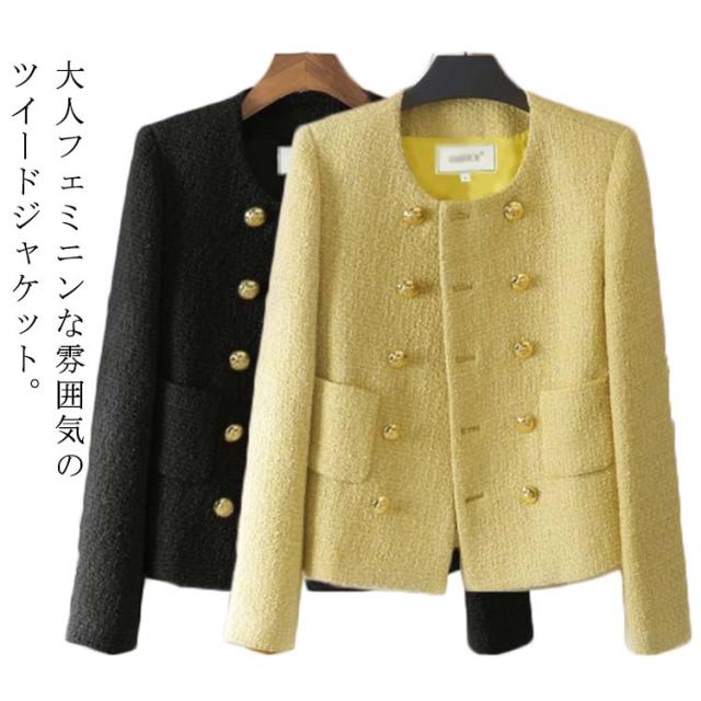 ノーカラー アウター 大人 通勤OL カーディガン 卒園式 入学式 ツイードジャケット ノーカラージャケット フォーマル 卒業式 レディース スーツ 結婚式 オフィスカジュアル 黒 ツイード 入園式