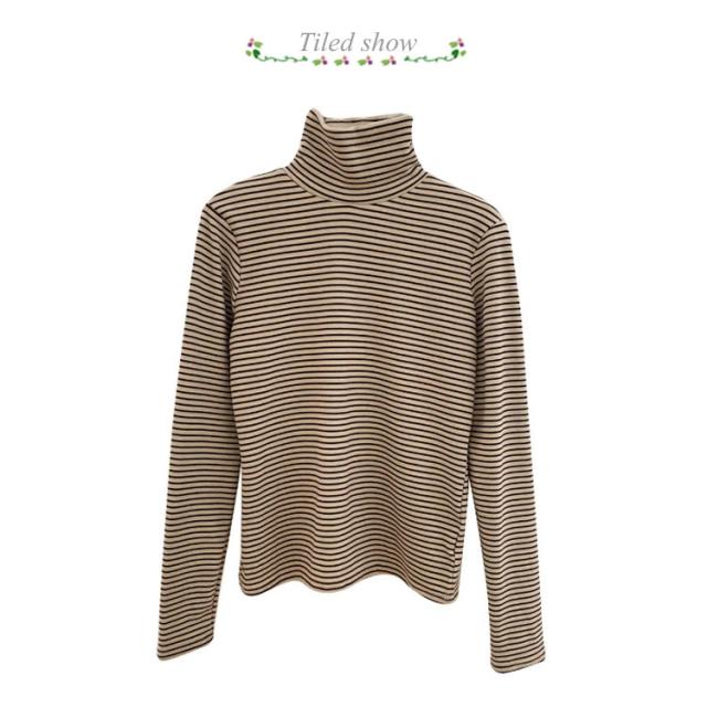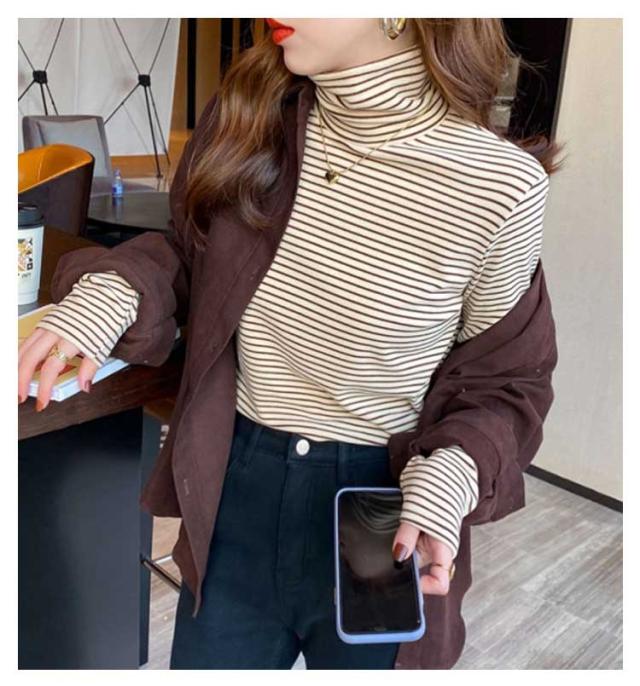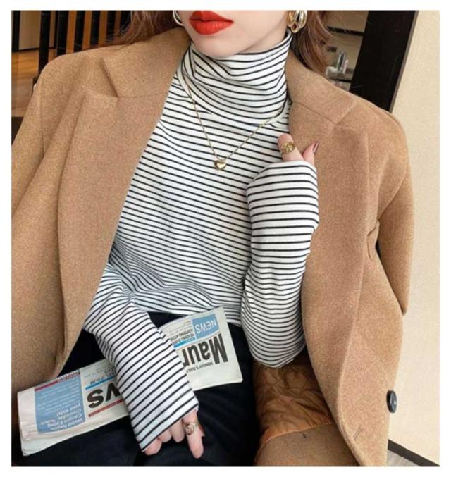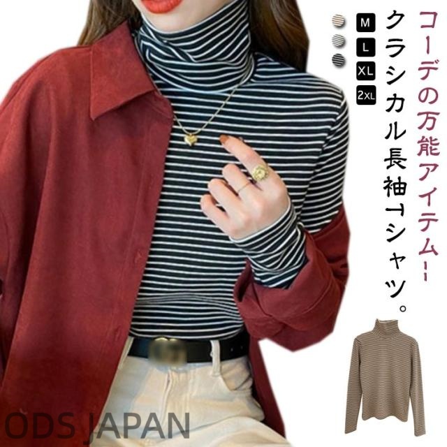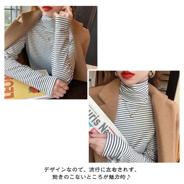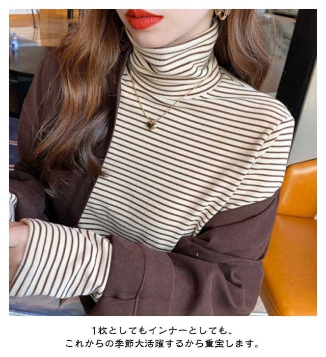 Tシャツ 長袖Tシャツ レディース ハイネック 裏起毛 タートルネック ボートネック ロンT ボーダー柄 ストレッチ 無地 重ね着 ニット インナー Tシャツ カットソー トップス オフィス カジュアル ビジネス 母 ママ 秋冬 春 オシャレ 送料無料