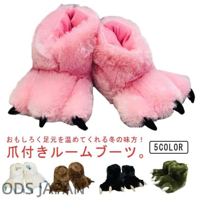 ルームシューズ もこもこ 爪付き スリッパ かかと付き 冬 冬用 動物 アニマル 爪 スリッパ ブーツ型 かわいい おもしろ ルームブーツ あったか 防寒 保温 ふわふわ ファー 足元 暖かい 室内履き 軽量 滑り止め レディース メンズ