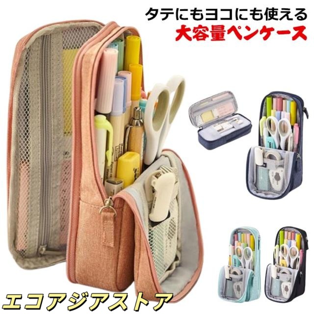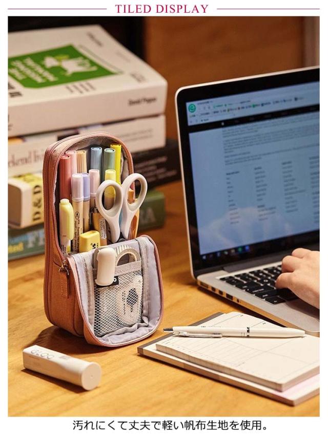 筆箱 ふでばこ 縦型 大容量 ペンケース 立つ 文具 文房具 帆布 シンプル かわいい 自立 スタンド型 タテ型 筆箱 ペンケース 多機能 子供 大人 兼用 筆入れ ペン袋 小学生 中学生 高校生 新学期 入学入園 入学祝い 黒 紺 ネイビー グリーン 【送料無料】