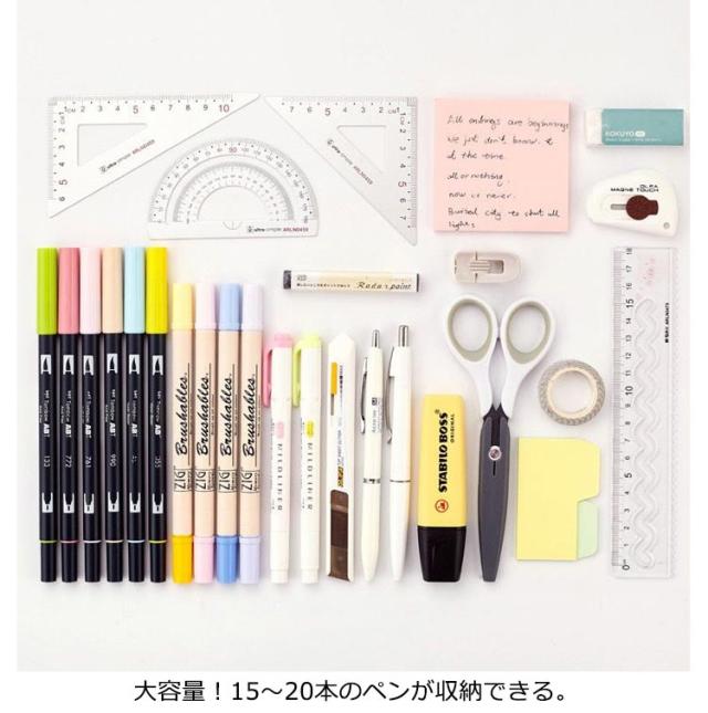 | タテにもヨコにも使える大容量ペンケース。 大容量!15?20本のペンが収納できる。 背面には、ハサミや定規など細かな物がキレイに収納できるポケットがあって、スマホのアクセサリーなども収納可能! 汚れにくて丈夫で軽い帆布生地を使用。 お子様から大人まで、とても幅広い年代で使える便利でオシャレなペンケースです。 | |