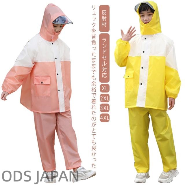 送料無料 レインコート 反射材 通学 セパレート 子供用 ランドセル対応 キッズ レインスーツ リュック対応 リュック レインウェア 雨具 自転車 小学生 女の子 男の子 レイン コート 上下セット アウトドア おしゃれ リュック対応 袋付 XL 2XL 3XL 子供用