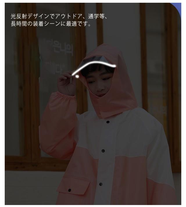 | リュックを背負ったままでも余裕で着れたのがとても良かった 縫い目もばっちり!縫い目から雨の侵入を防ぐレンコートセットアップです。 両手も空いて子供に最適! フードが大きめで透明ツバが雨を防ぎ、視界を守るので 雨の日でも安心安全。 光反射デザインでアウトドア、通学等、長時間の装着シーンに最適です。 こんなにおしゃれなレインコートなら雨の日もウキウキしちゃうね。 子供が気に入ってくれて雨の日が楽しみなようです 携帯に便利な収納袋付きで、 軽量でコンパクトに折り畳め、持ち運びも楽々! | |